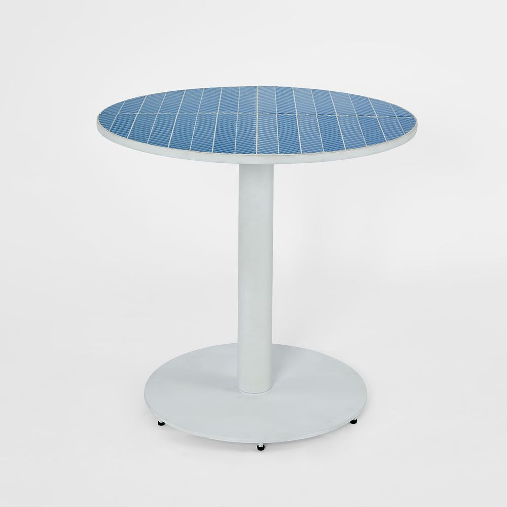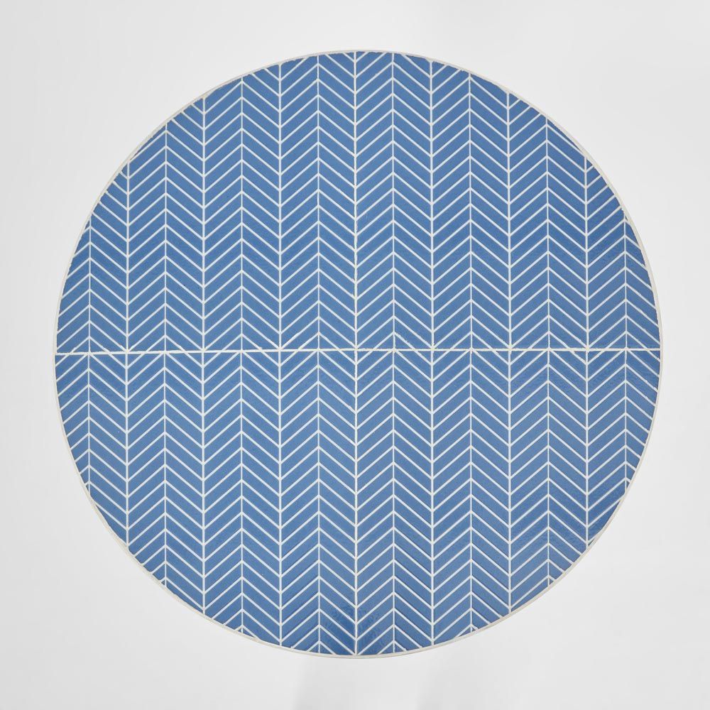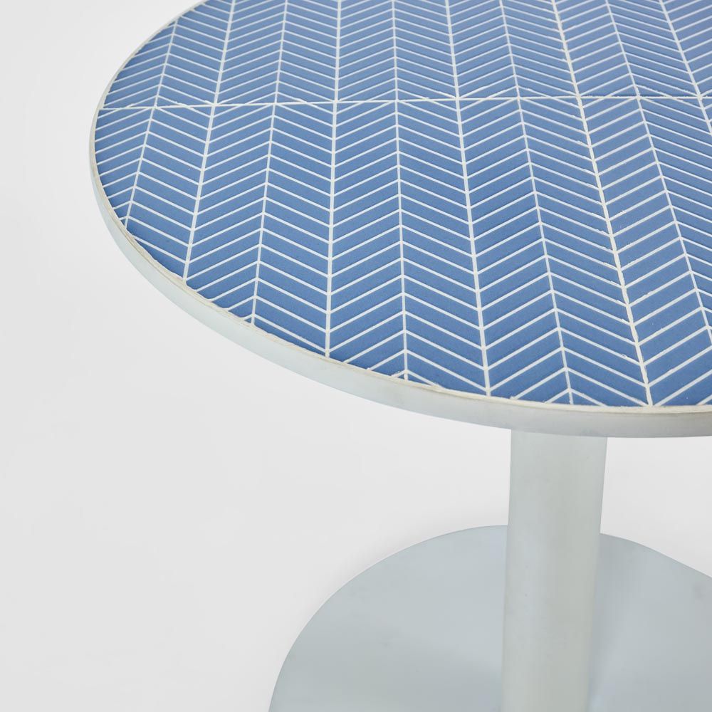 Herringbone Round Table Outdoor Iron White with blue tiled top