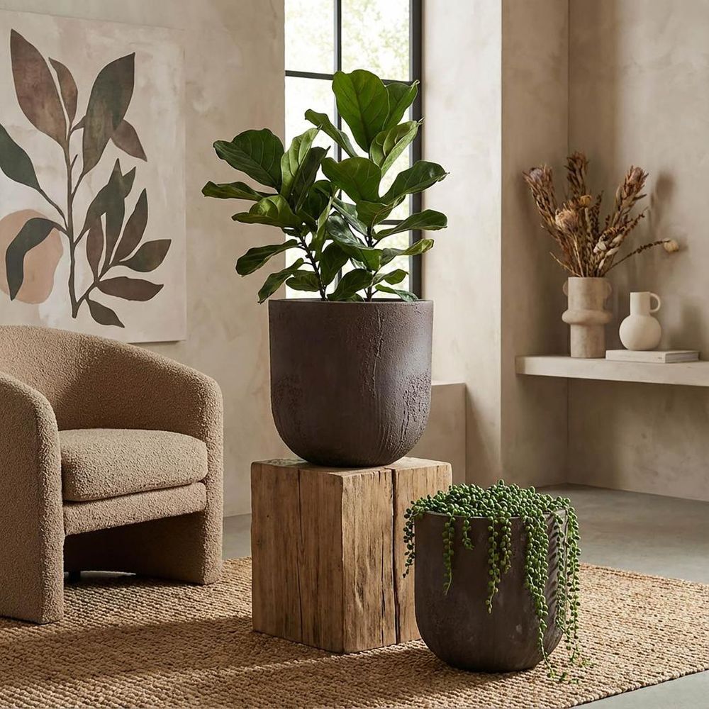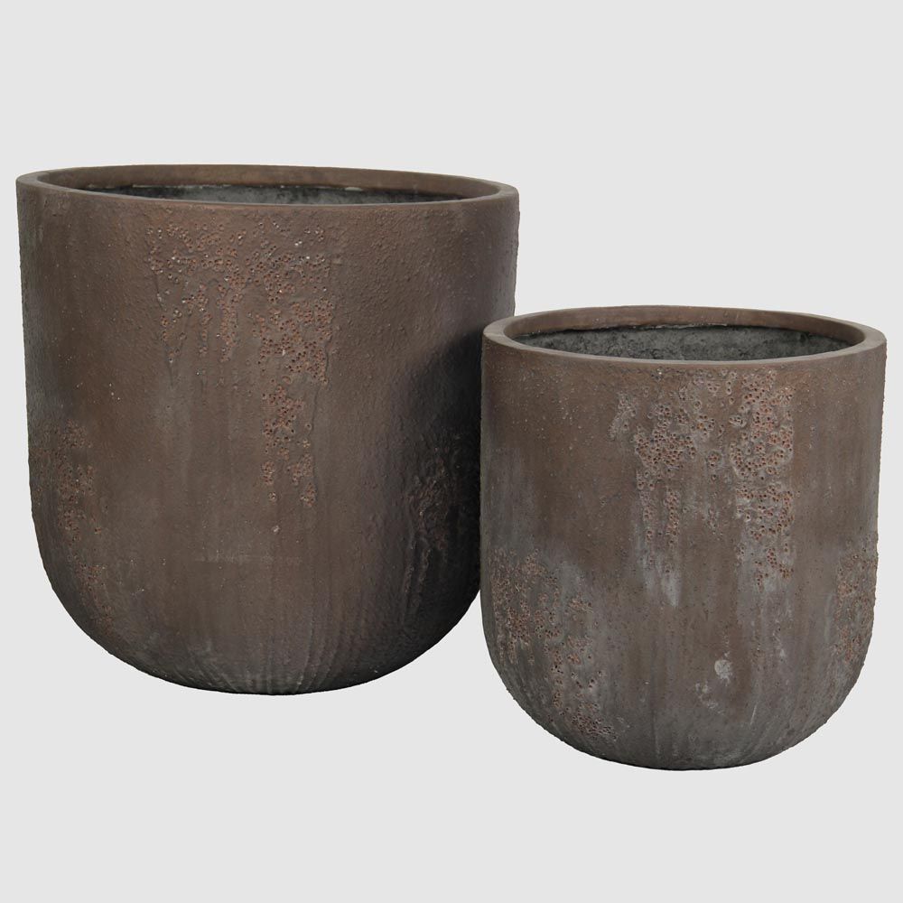 Oyster Lava Planter Large Set of 2 Brown