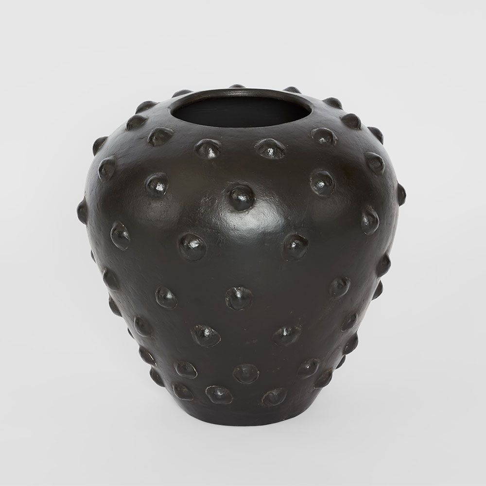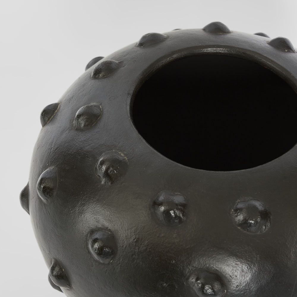 Artistic and expressive, the Zia Pot With Dots features a hand-painted dotted pattern that brings visual movement and personality to greenery. Its black antique finish offers depth and a timeless quality. Ideal for displaying sculptural foliage or standing alone as a bold decorative accent, it gracefully bridges the decorative and the functional.