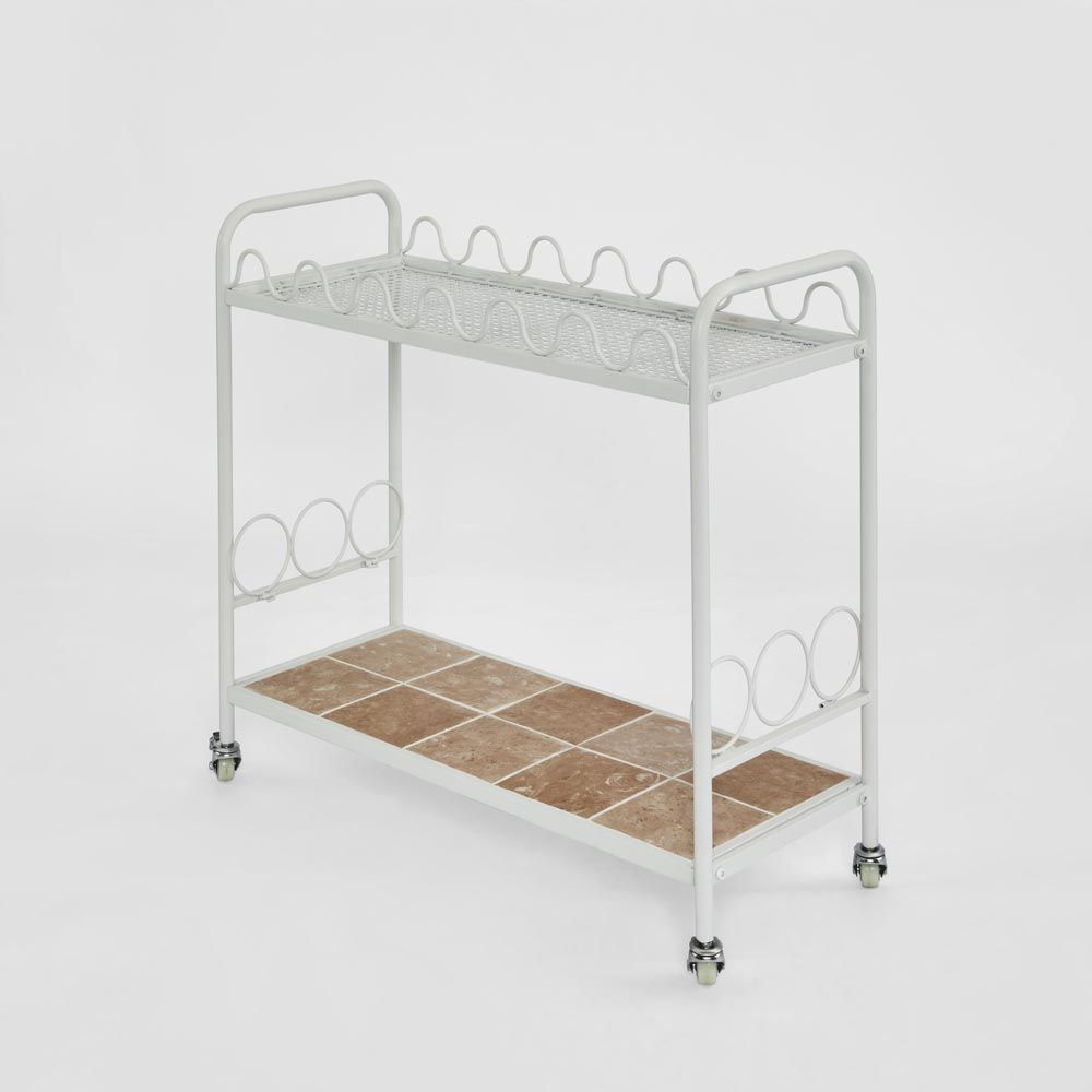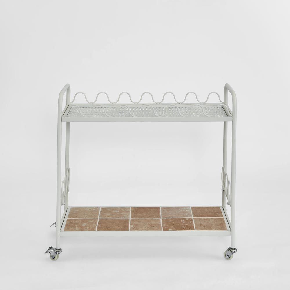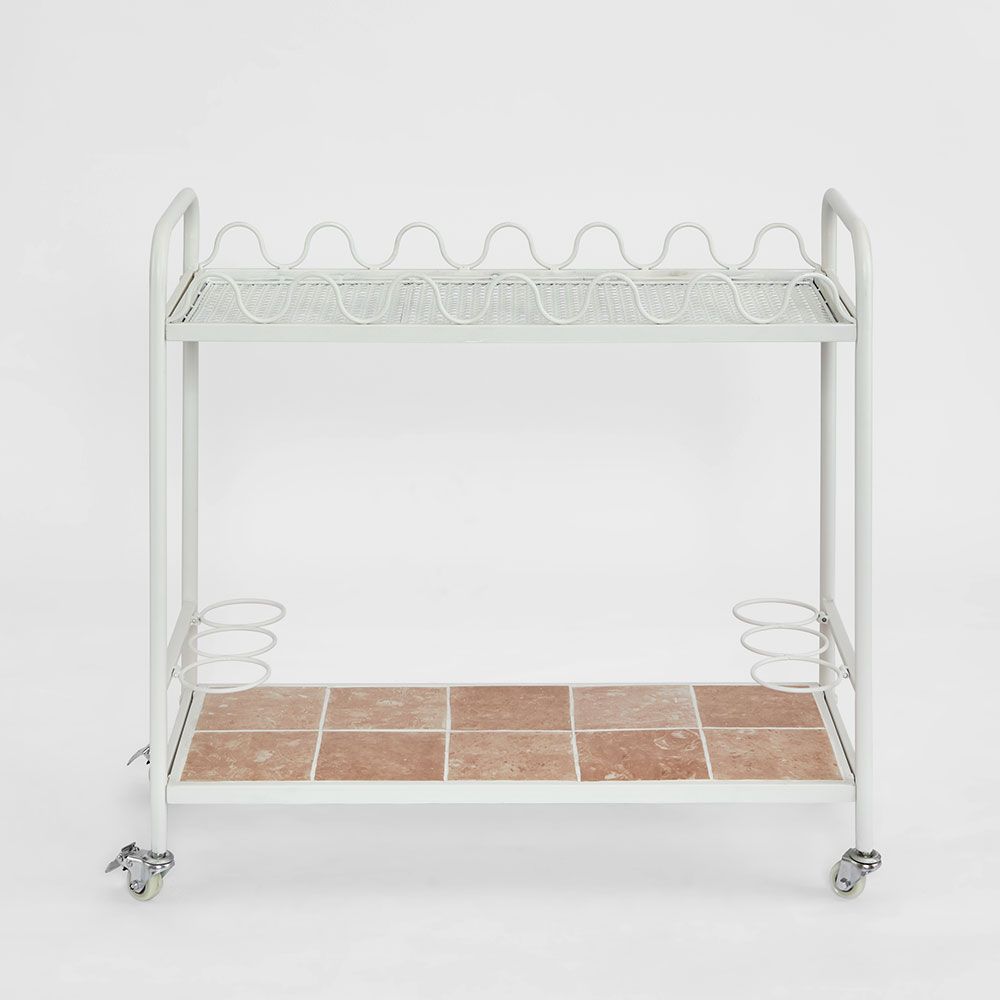 Wira Bar Cart Outdoor White with tiled shelf