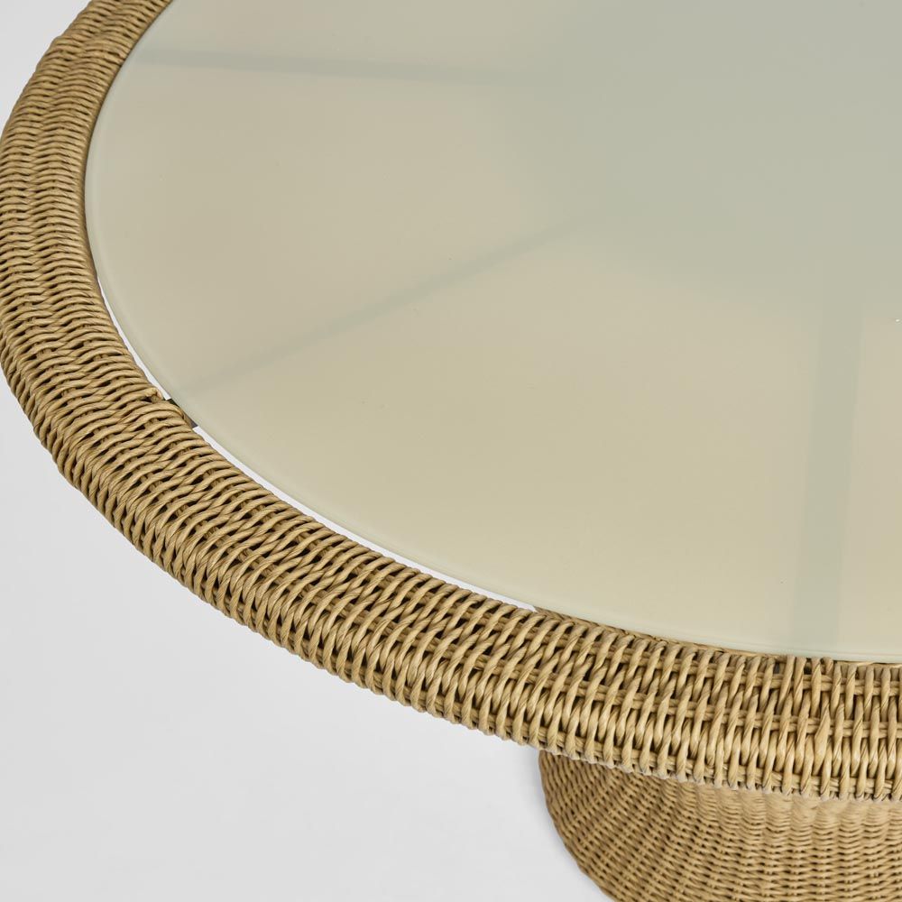 FRAME Aluminium Frame: Light-weight and durable rustproof frame. MATERIAL Outdoor wicker with a twist - Heat and waterproof, highly fade resistant durable PE wicker weave. The twist adds a natural feel with slight variation achieved in the woven finish. Sturdy tempered glass table top surface in light natural colour. ASSEMBLY Easy Assembly required - Top attaches to frame with 4 x fixings CARE Easy maintenance - hose down and brush clean. Wipe dry with a clean cloth