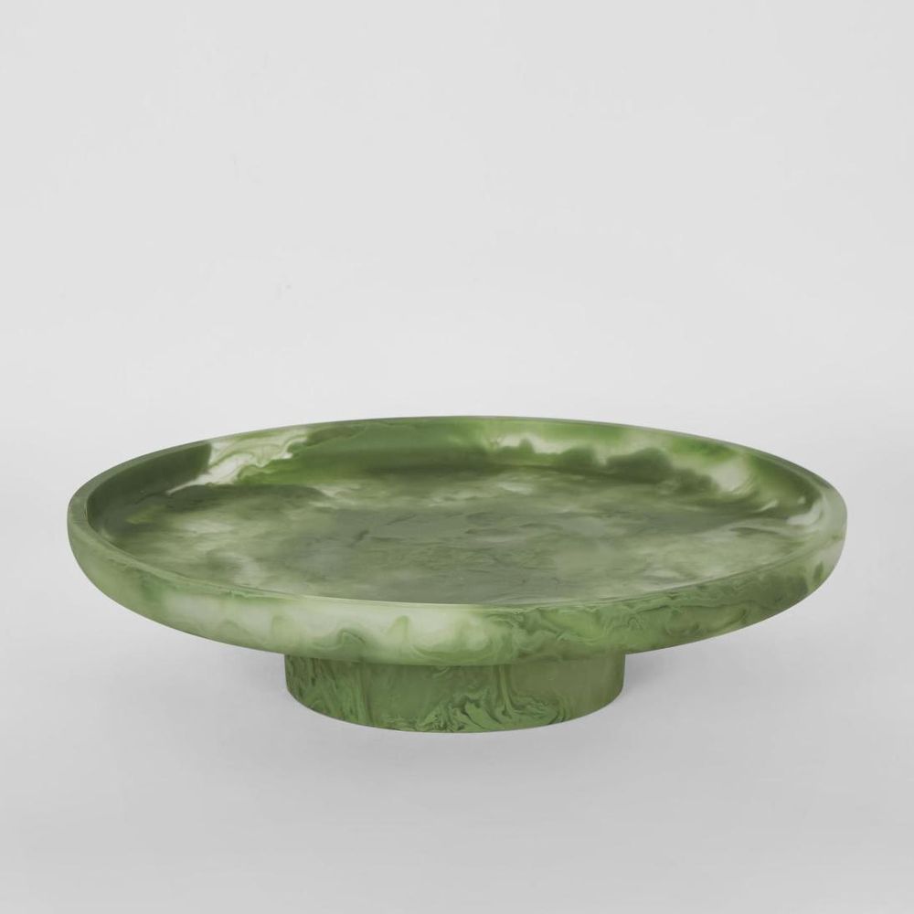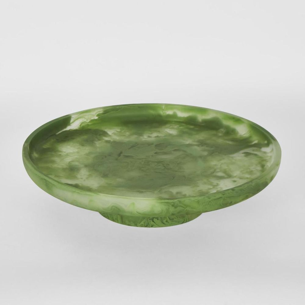 CARSON Resin Serving Platter Round on Stand Green