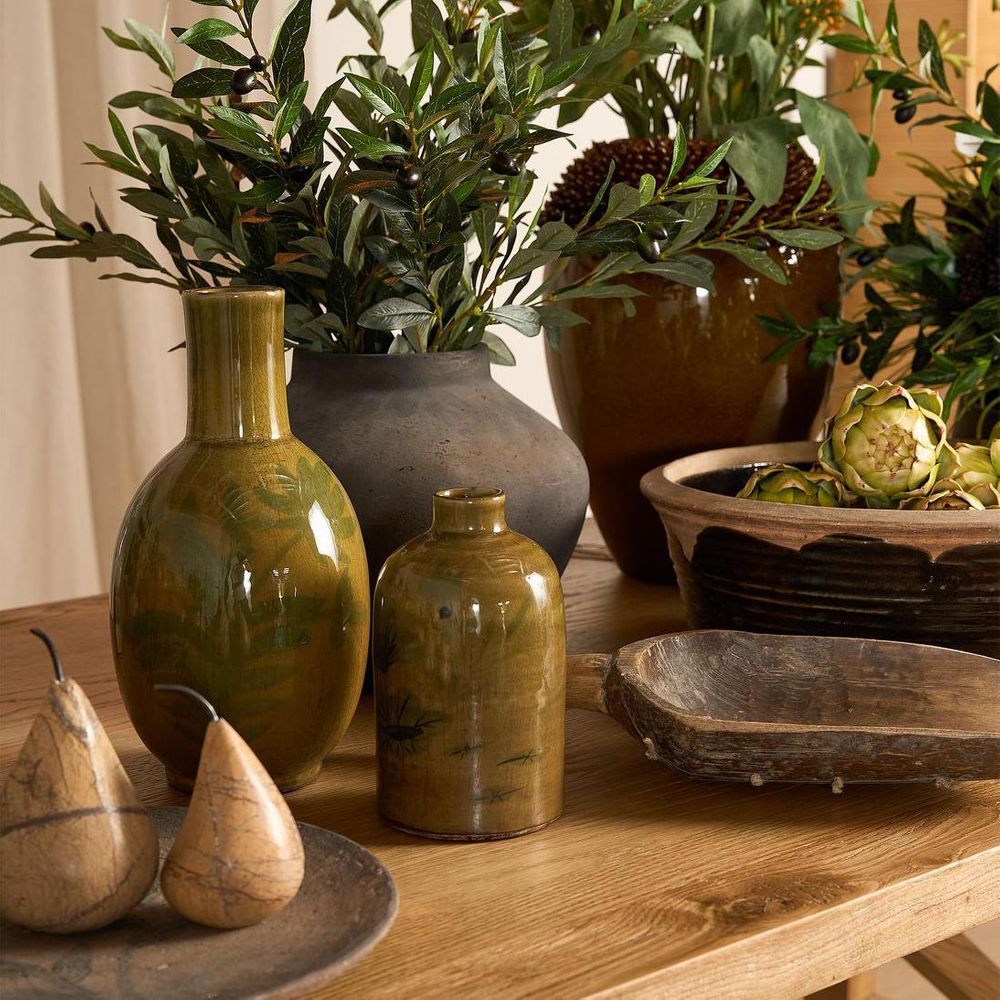 Spruce up your living space with the timeless charm of the Mae Terracotta Green Tall Vase. Crafted with green-glazed terracotta and adorned with hand-painted botanical designs, each piece from the Mae Terracotta collection is a unique testament to nature's elegance. Perfect for styling in classic settings, this vase, with blooms or on its own, seamlessly combines sophistication and artistry, making it an exquisite addition to any room. watertight/waterproof