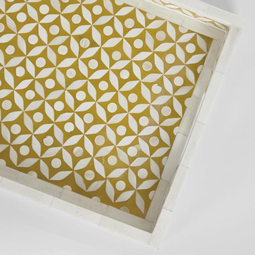 Mina Bone Inlay Tray Mustard/White