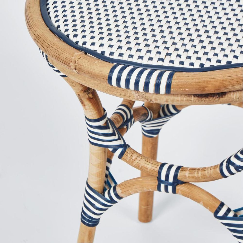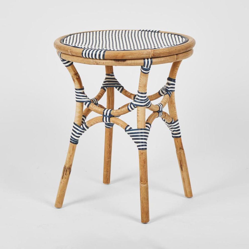 Introducing the Portsea Side Table in Navy & White, a stylish and versatile addition to any living space. This side table combines classic design with modern functionality, perfect for enhancing both indoor and outdoor settings. Key Features: Elegant Design: The Portsea Side Table features a striking navy and white color scheme that adds a touch of sophistication to any décor. The clean lines and contemporary design make it a perfect complement to a variety of interior styles. High-Quality Materials: Crafted from premium materials, this side table is designed for durability and longevity. The sturdy construction ensures it can withstand everyday use, while the weather-resistant finish makes it suitable for outdoor use as well. Versatile Functionality: Ideal for use in living rooms, bedrooms, patios, or garden areas. Whether used as a coffee table, bedside table, or accent piece, the Portsea Side Table provides both style and practicality. Compact and Practical: The compact size of the Portsea Side Table makes it perfect for smaller spaces, while still offering ample surface area for drinks, books, or decorative items. Its lightweight design allows for easy mobility and placement. Easy Maintenance: The materials used in the construction of this side table are easy to clean and maintain. Simply wipe down with a damp cloth to keep it looking fresh and new. Artisan Craftsmanship: Each Portsea Side Table is meticulously crafted with attention to detail, ensuring high quality and a beautiful finish. The handcrafted nature of this piece means each table is unique, with slight variations that add to its charm. Elevate your living space with the Portsea Side Table in Navy & White, where classic design meets modern versatility. Enjoy a piece that is not only a functional addition to your home but also a statement of refined taste and elegant style. Suitable for use in sheltered outdoor space and not exposed to rain.