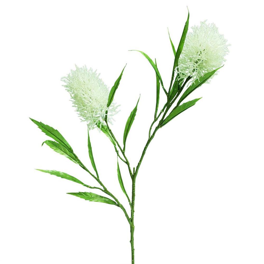Double the elegance with our artificial White Protea Stem with 2 Heads. It features cylindrical, bottle brush-like flowers in delicate white hue, exuding delicate beauty and grace. Complementing these exquisite blooms are long, slender green leaves with serrated edges, adding a touch of verdant freshness to the arrangement. Whether showcased solo in a tall vase or incorporated into larger floral displays, this protea stem is sure to double the charm and elevate the ambiance of any space.