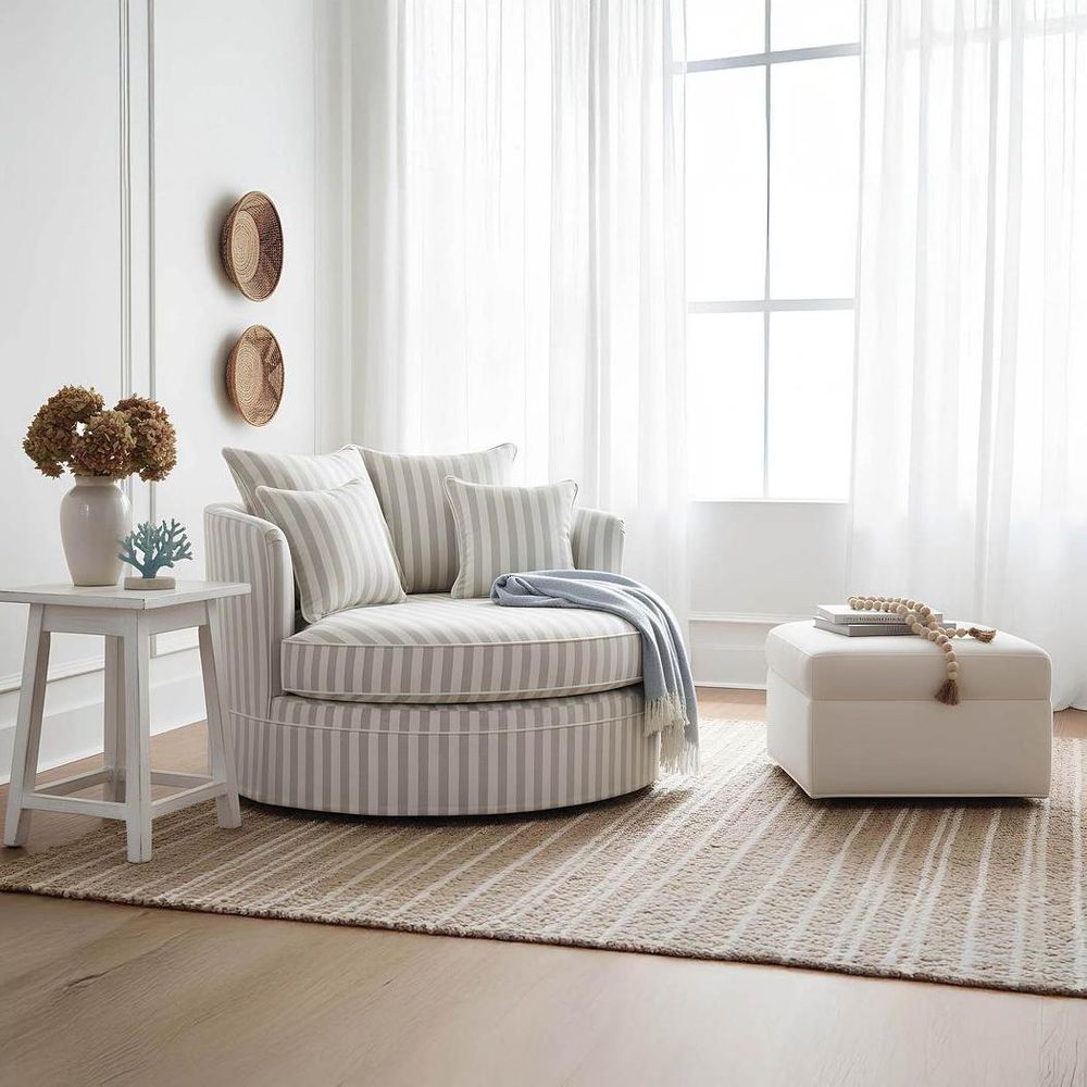 Noosa Hamptons Snuggle Chair Natural Stripe with White piping