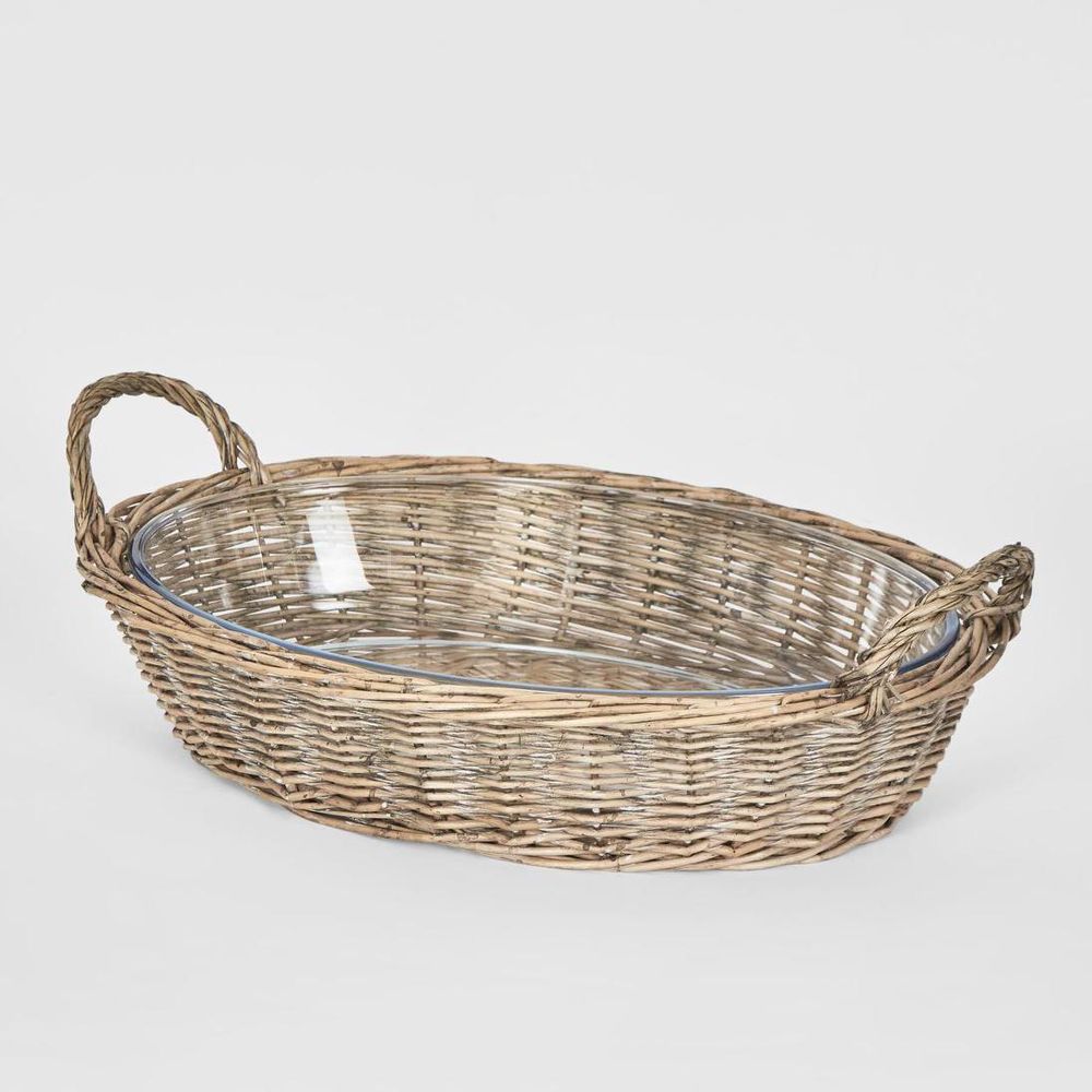 Oval Basket With Glass Dish