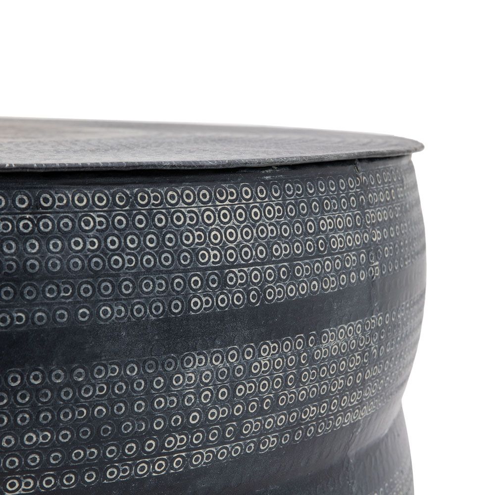 Stunning collection of metal occasional tables perfect for adding drama to your living space. Featuring a charcoal and off-white finish, this table is a unique addition to your home.