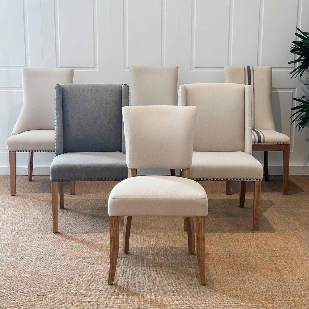 Spice up your dining experience with our Ithaca Dining Chair. Upholstered in timeless grey fabric and adorned with chic stud detailing, these chairs add a touch of sophistication to any table setting. With their sleek timber legs, they're not just seating options, they're conversation starters, perfect for revamping your dining space with flair.