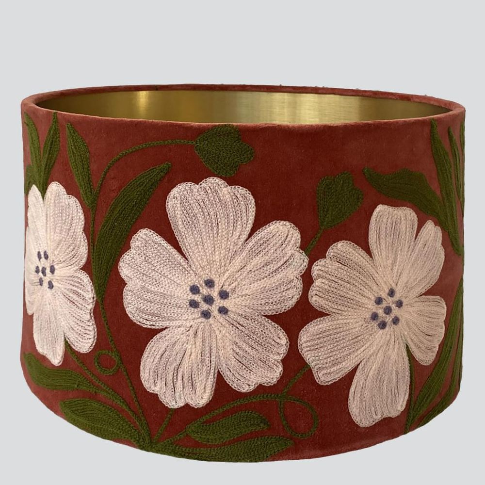 Poppy Velvet Drum Shade Rust Multi