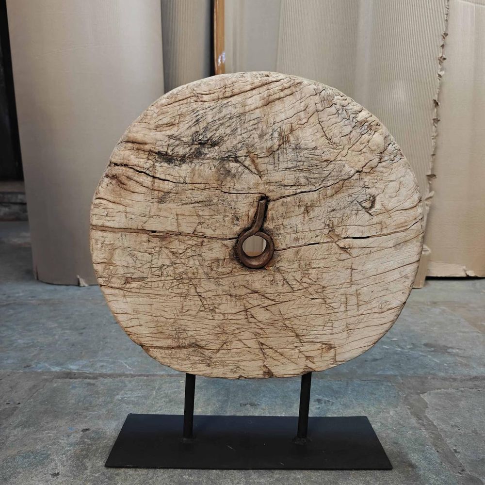 Decorative Wooden Wheel on Stand