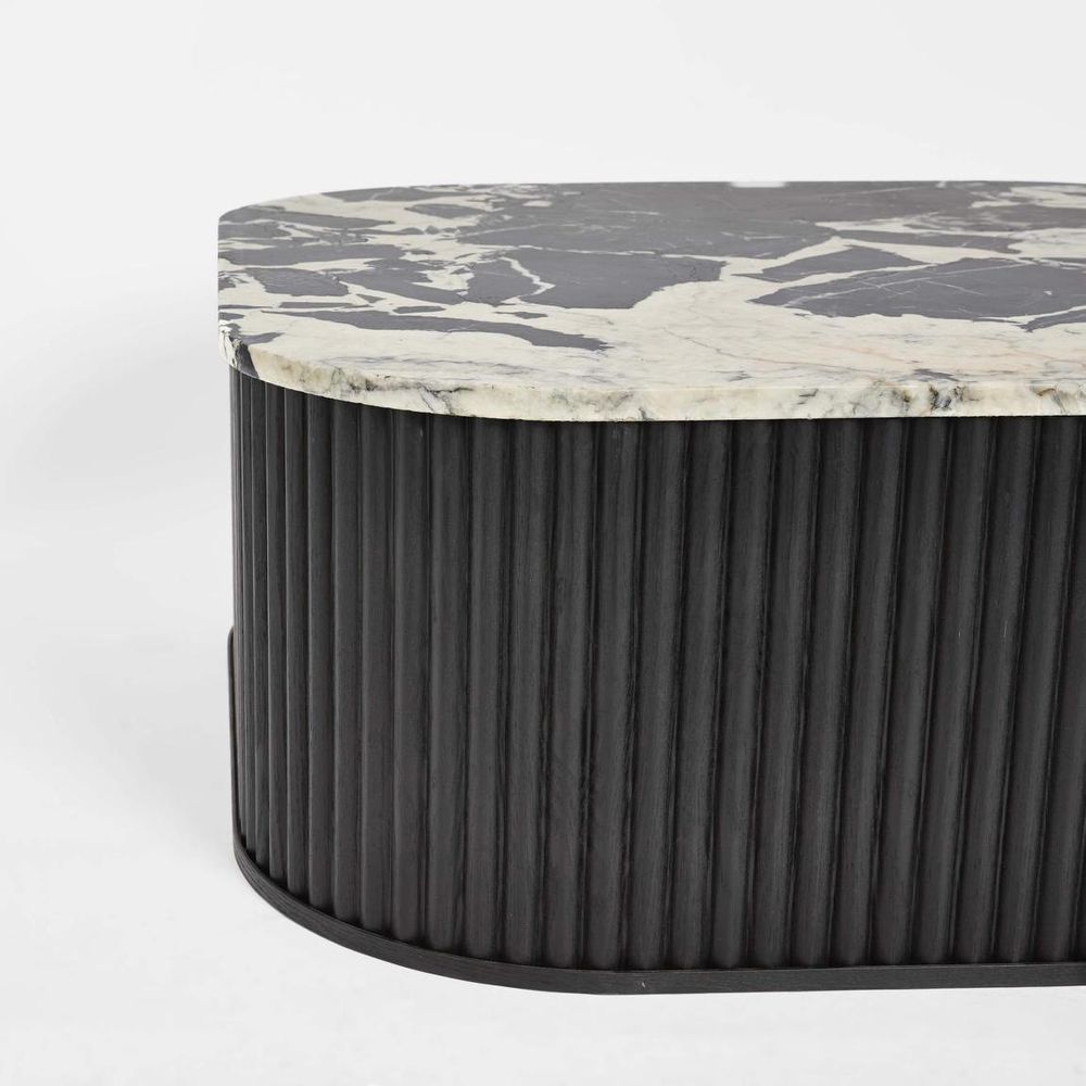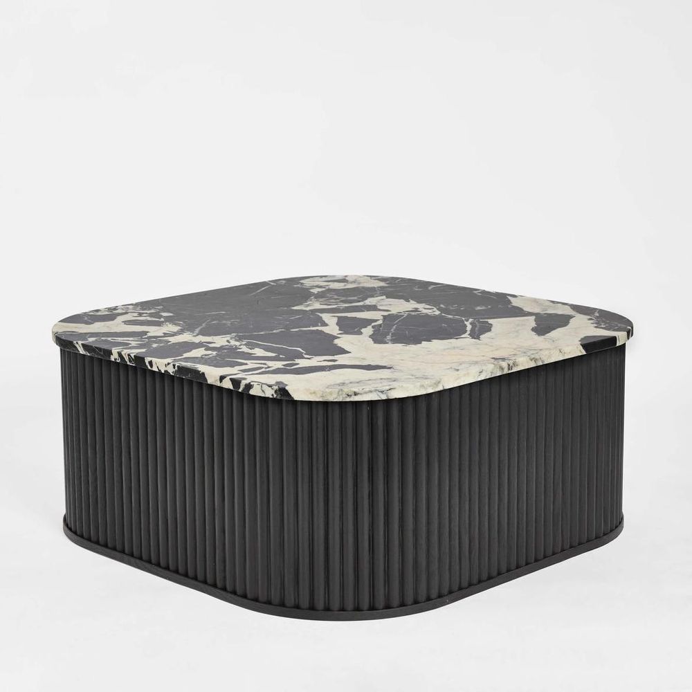 The Noir Coffee Table brings a bold, gallery-worthy presence to you living space. A striking black-and-white marble top with dramatic veining sits over a rounded black oak base, finished with rhythmic vertical fluting for added texture and shadow play.