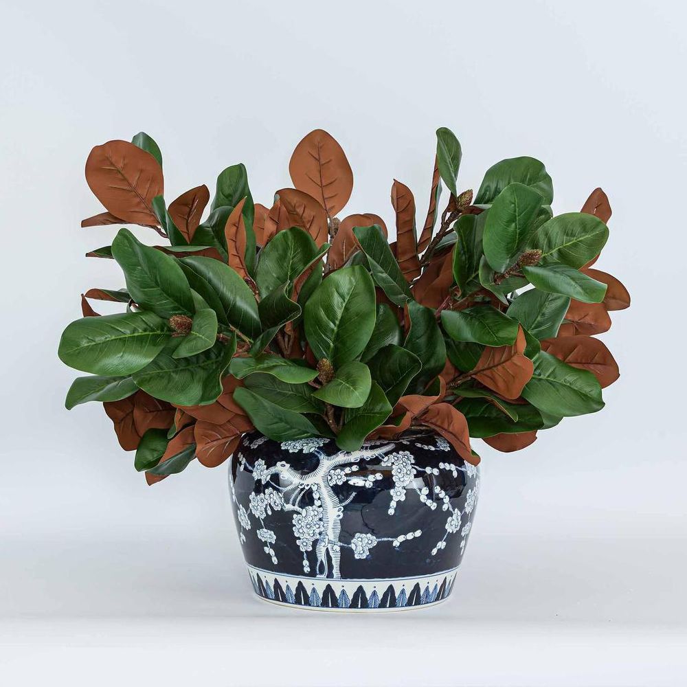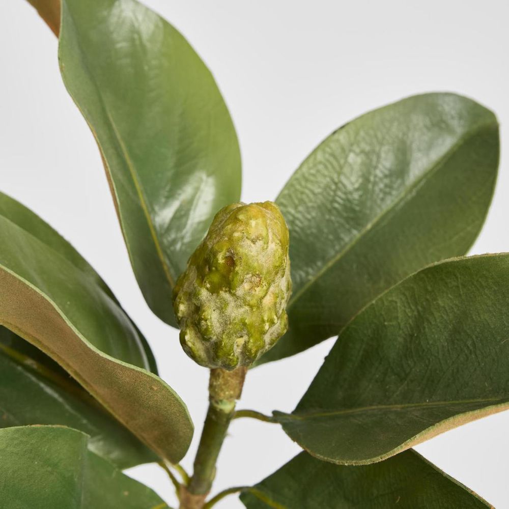 Embrace the tranquil essence of magnolia with our lifelike Magnolia Stem, exuding a sense of peaceful serenity. Each stem features a central magnolia bud, promising the imminent beauty of blossoming flowers. The large leaves, with their shiny, waxy texture resembling leather, boast a unique semi-dried appearance with light brown undersides, adding to their natural charm. Crafted with cutting-edge hyperrealistic technology, this stem offers a remarkably lifelike appearance, while its long-lasting, hypoallergenic, and cost-effective nature ensures no wilting or unpleasant odors. With no assembly required and minimal maintenance, simply dust it with a static feather duster to preserve its timeless allure.