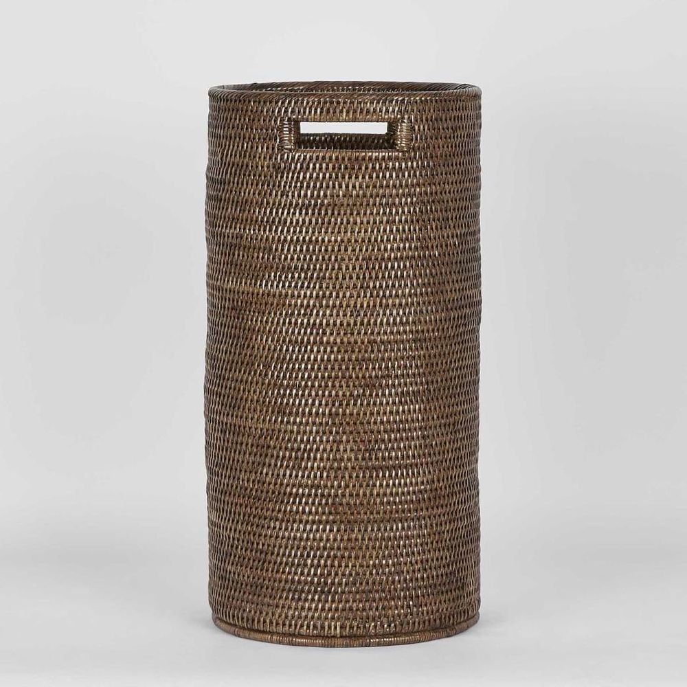 Keep your umbrellas neatly stored and easily accessible with the Paume Rattan Umbrella Stand in Antique Brown. Handcrafted by skilled artisans in Myanmar, this high-quality rattan stand features convenient handles for easy transportation. Embrace both functionality and aesthetics, elevating your home decor while enjoying the durability that stands the test of time. Easy to clean with a soft brush and warm soapy water, this umbrella stand effortlessly combines practicality with sophistication. Please note: Rattan is not designed for full outdoor use. If placed outdoors or even in covered outdoor areas, it may weather, fade, or change over time due to exposure to sunlight and moisture. We recommend indoor use or placing it in well-protected areas.