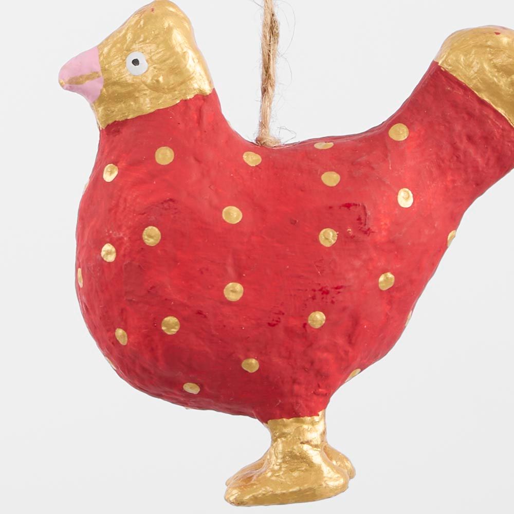 Mache Spotty Chicken Tree Decoration Red