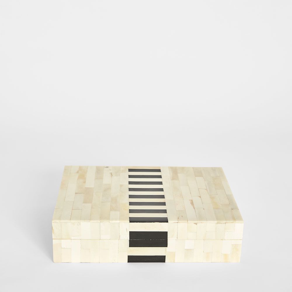 Handcrafted trinket box featuring intricate bone inlay, perfect for storing jewelry and treasured keepsakes.Each piece is carefully handcrafted in India using ethically sourced buffalo bone, ensuring every item is one-of-a-kind. The art of bone inlay in India, especially in Rajasthan, evolved over centuries, reaching its peak in the royal courts where artisans created intricate decorative objects and furniture. Skilled hands carve delicate fragments of bone, which are then meticulously arranged in detailed patterns. Finally, resin fills the spaces around the bone, forming smooth, mosaic-like surfaces that celebrate both craftsmanship and heritage.Gently dust regularly and keep out of direct sunlight. If needed, wipe with a lightly damp cloth and dry immediately. Avoid using harsh chemicals.