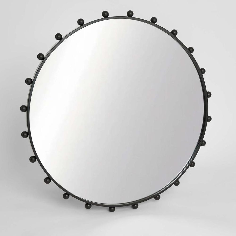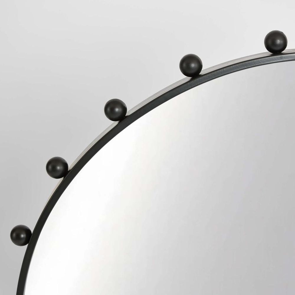 This playful mirror creates a sculptural, almost industrial edge, giving the mirror a striking silhouette that stands out even from a distance. Made from iron the frame is double e-coated then finished in a matte powder coat paint suitable for outdoors.