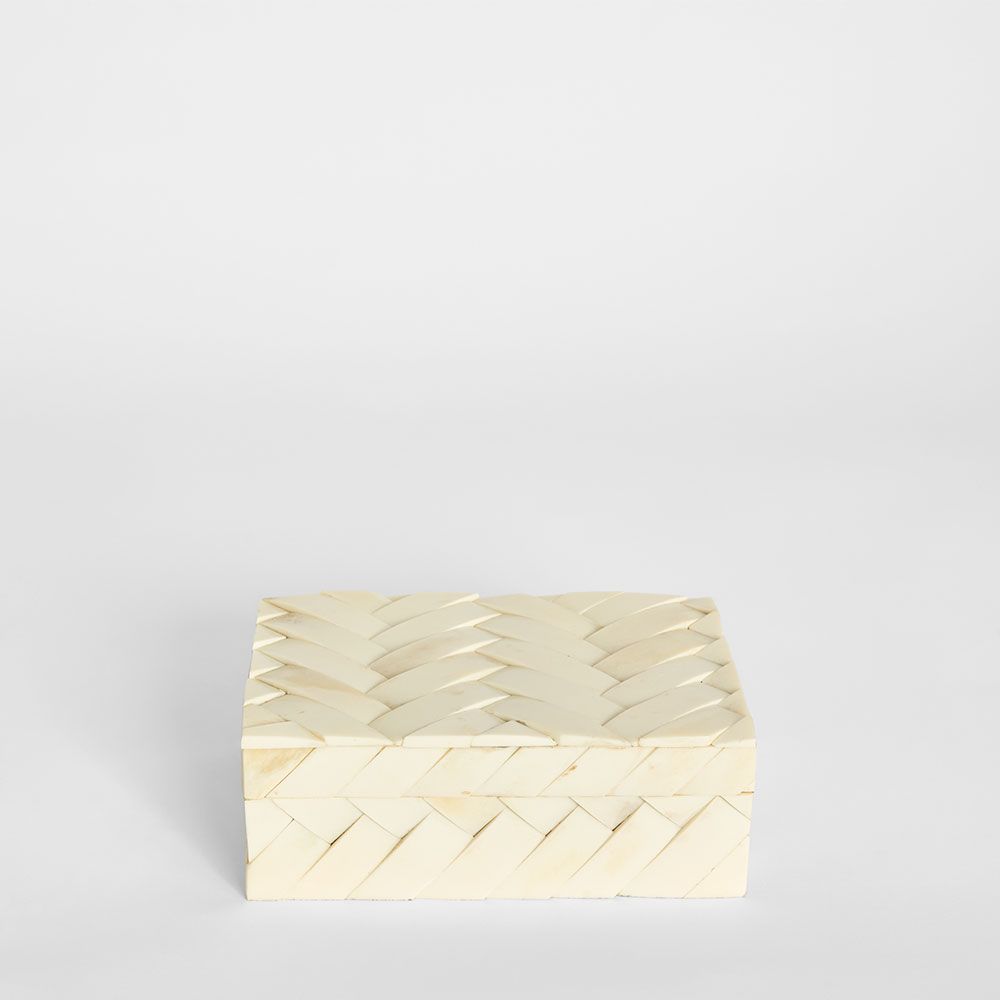 Handcrafted trinket box featuring intricate bone inlay, perfect for storing jewelry and treasured keepsakes.Each piece is carefully handcrafted in India using ethically sourced buffalo bone, ensuring every item is one-of-a-kind. The art of bone inlay in India, especially in Rajasthan, evolved over centuries, reaching its peak in the royal courts where artisans created intricate decorative objects and furniture. Skilled hands carve delicate fragments of bone, which are then meticulously arranged in detailed patterns. Finally, resin fills the spaces around the bone, forming smooth, mosaic-like surfaces that celebrate both craftsmanship and heritage.Gently dust regularly and keep out of direct sunlight. If needed, wipe with a lightly damp cloth and dry immediately. Avoid using harsh chemicals.