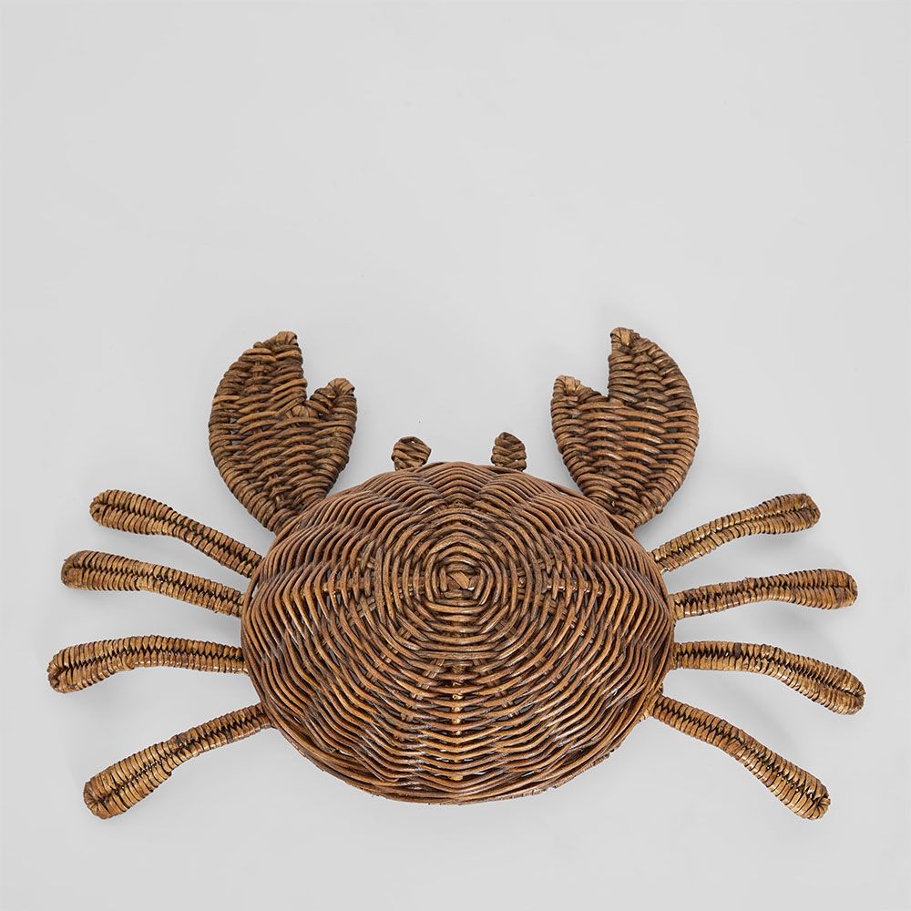 Delightful crab figurine that bring coastal charm and playful character to your décorGently dust regularly and keep out of direct sunlight. If needed, wipe with a lightly damp cloth and dry immediately. Avoid using harsh chemicals.This item is hand-made using natural materials which have been intricately hand-woven & finished. There may be slight variations or imperfections from one item to the next and each may differ slightly from the photographed sample in woven detail, grain patterns, texture and colur.
