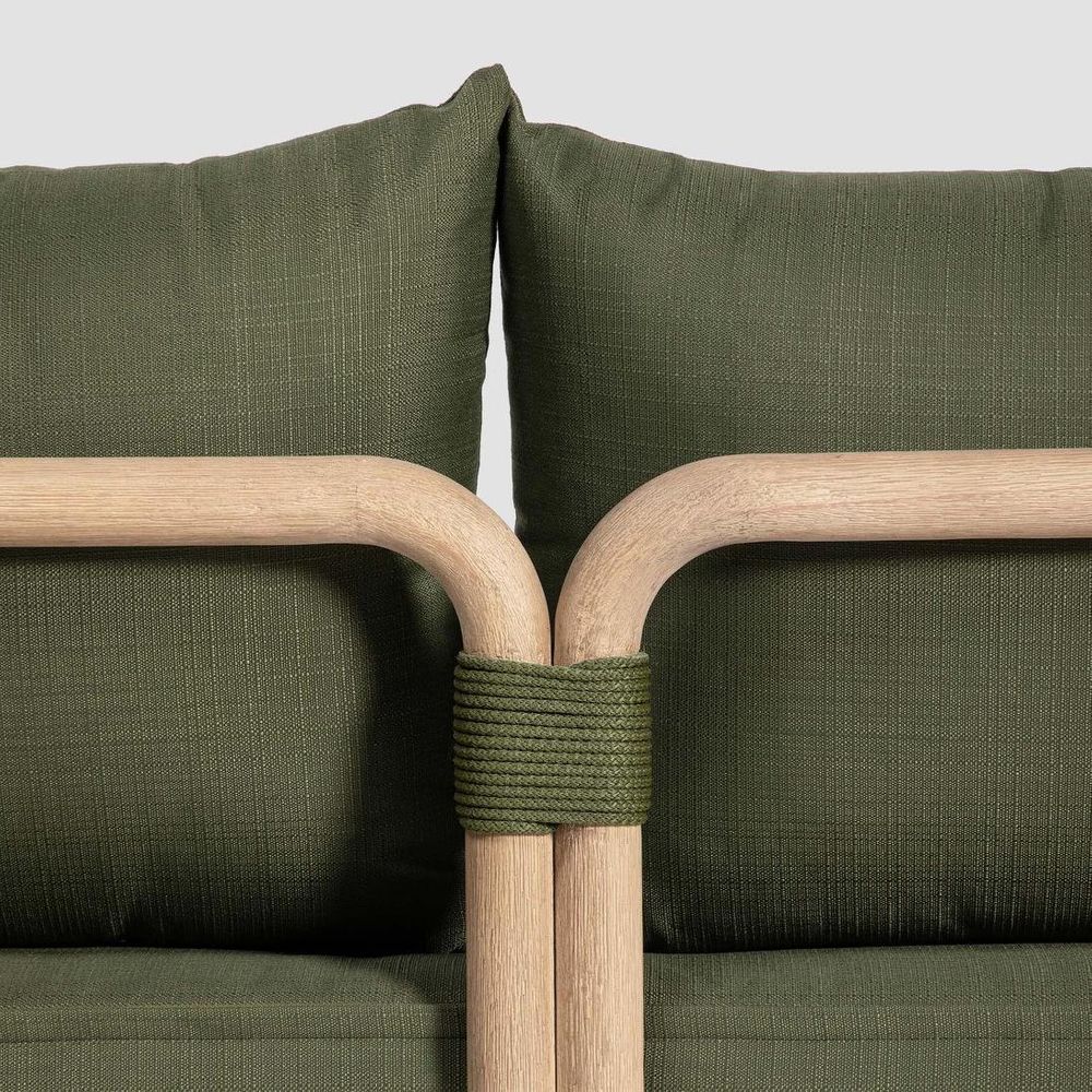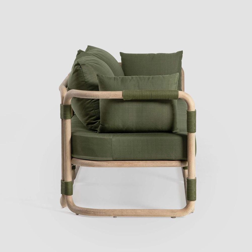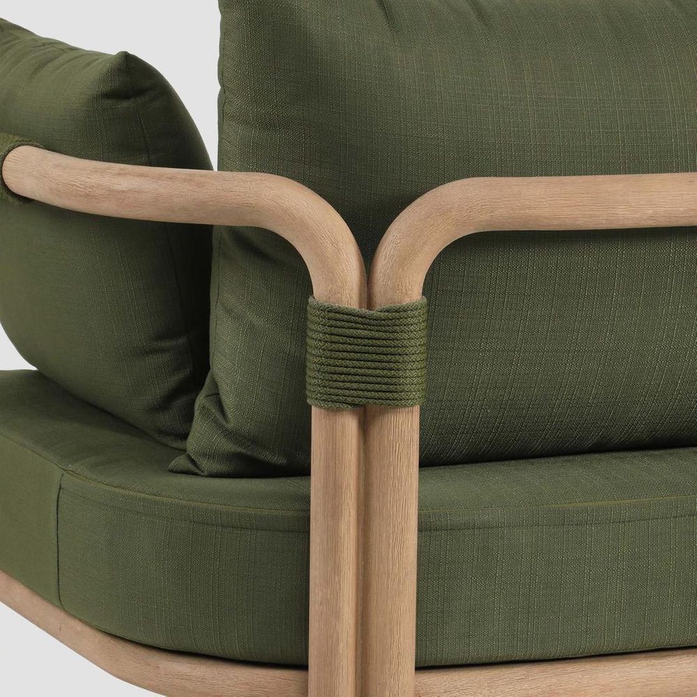 Crafted from solid eucalyptus wood and handwoven rope detailing, the Vita Sofa embodies contemporary elegance with a natural warmth. Its smooth, rounded frame contrasts beautifully with forest green cushions, creating a refined balance of form and comfort. It’s clean, versatile design complements the Vita Coffee Table, Side Table & Armchair, creating a stylish, cohesive look. For best care, store cushions indoors or keep them covered when not in use, especially during rain or extreme weather conditions.