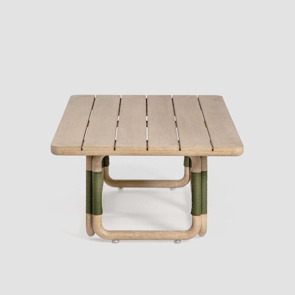 The Vita Coffee Table showcases refined craftsmanship with a solid eucalyptus wood frame and softly curved edges. Its clean, structured silhouette is accented by olive rope detailing, adding a touch of texture and modern contrast. Perfectly balanced between natural warmth and contemporary design, this table complements the Vita Side Table, Sofa & Armchair, creating a stylish, cohesive look. Assembly required. For best care, store cushions indoors or keep them covered when not in use, especially during rain or extreme weather conditions.