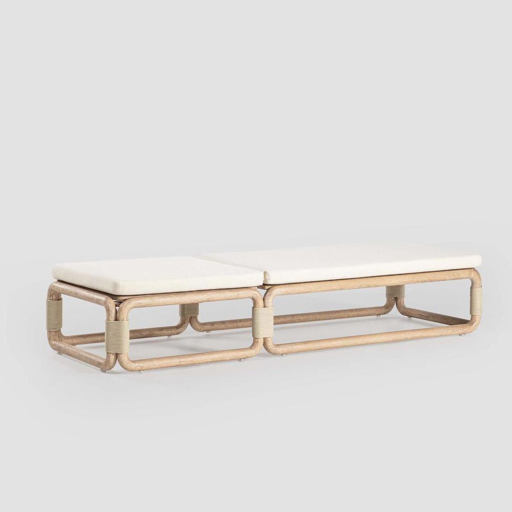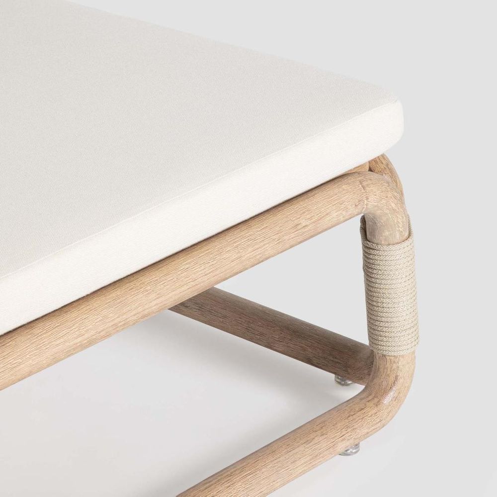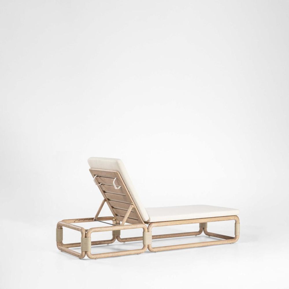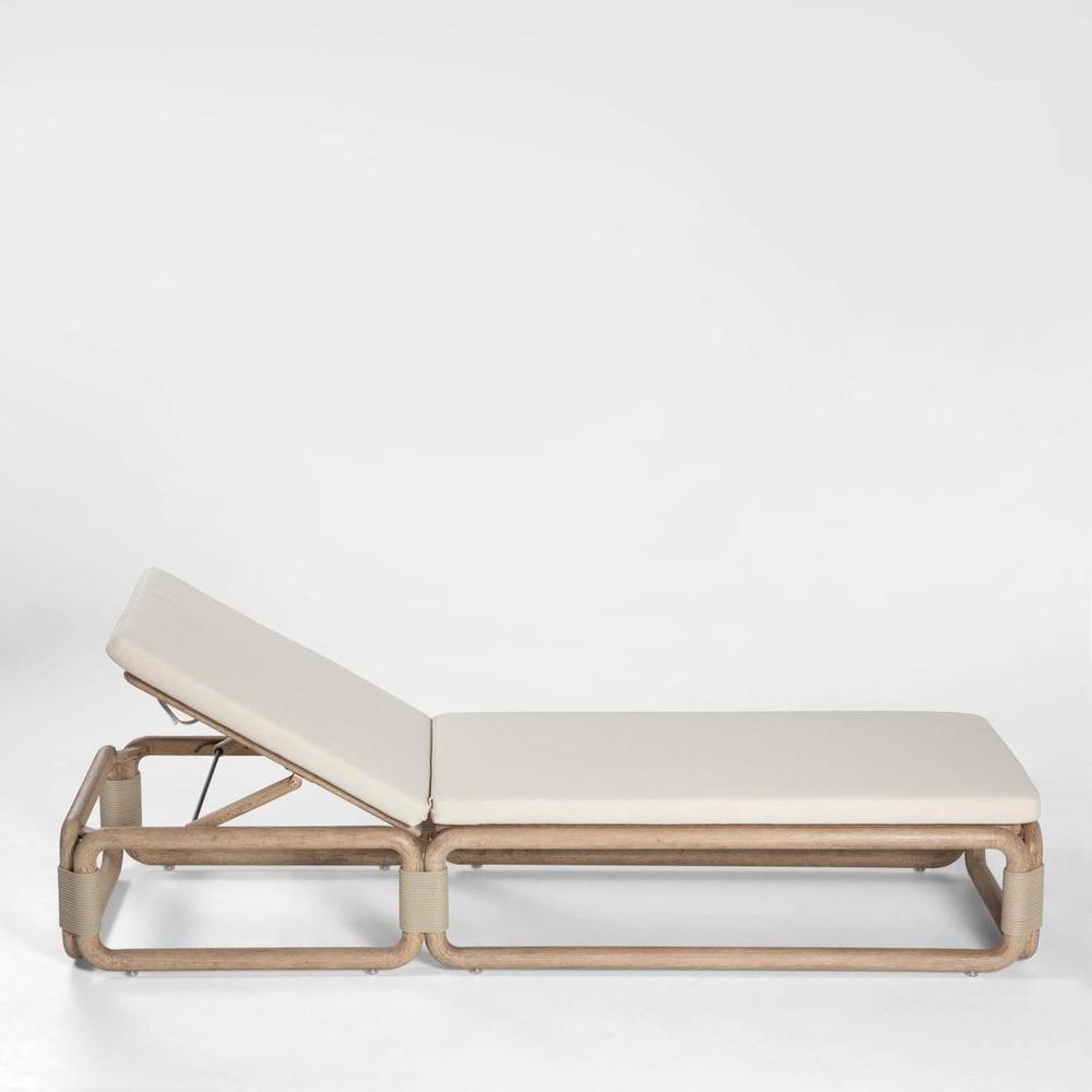 Designed for relaxed outdoor living, the Vita Sun Lounger combines contemporary form with natural warmth. Crafted from solid eucalyptus wood, it features elegant rope detailing that adds texture and visual interest. The smooth curved frame and cream cushions, create a serene, resort-inspired feel. Adjustable for comfort and effortlessly stylish, the Vita Sun Lounger captures the easy elegance of the collection. For best care, store cushions indoors or keep them covered when not in use, especially during rain or extreme weather conditions.