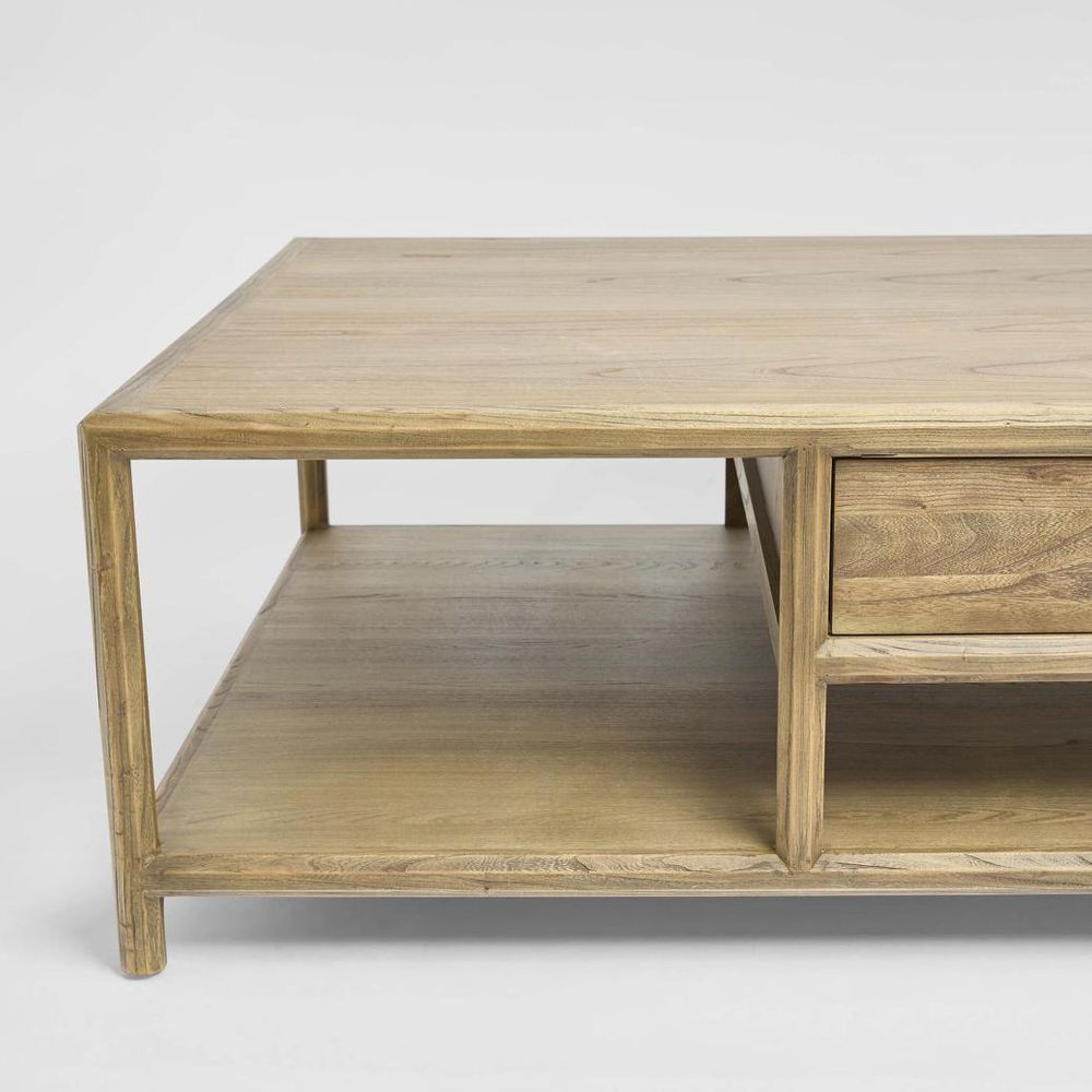 FRAME Solid elm wood with 2 drawers and handy shelf for storage ASSEMBLY Fully assembled, CARE Dust regulary, wipe with a clean cloth Floor Clearance: 7cm