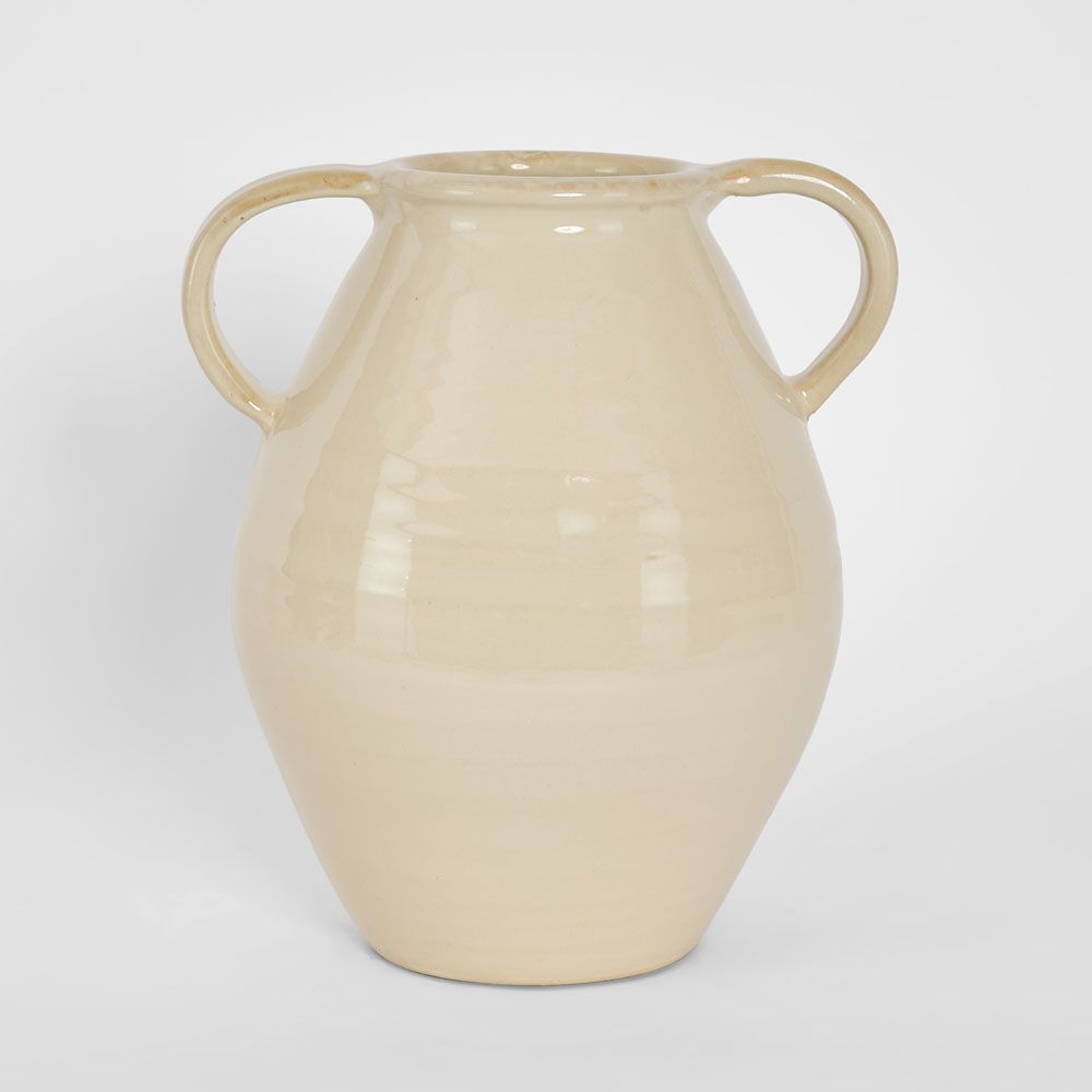 Elegant and functional, this vase with handles features a timeless silhouette crafted to complement any decor. Its thoughtfully designed handles add both charm and practicality, making it perfect for displaying fresh blooms, dried arrangements, or simply as a sculptural accent to elevate your space with effortless style. Available in White Glaze and Mustard Glaze. Water-resistant, however, due to the handmade nature and characteristics of the materials, complete waterproofing cannot be guaranteed. Watertight: N Drain hole or Plug: N Top opening diameter: 10cm