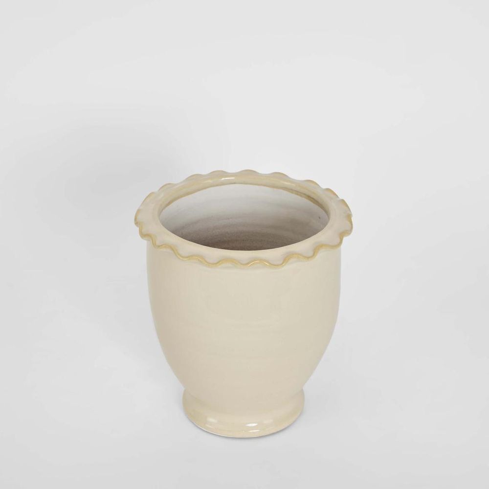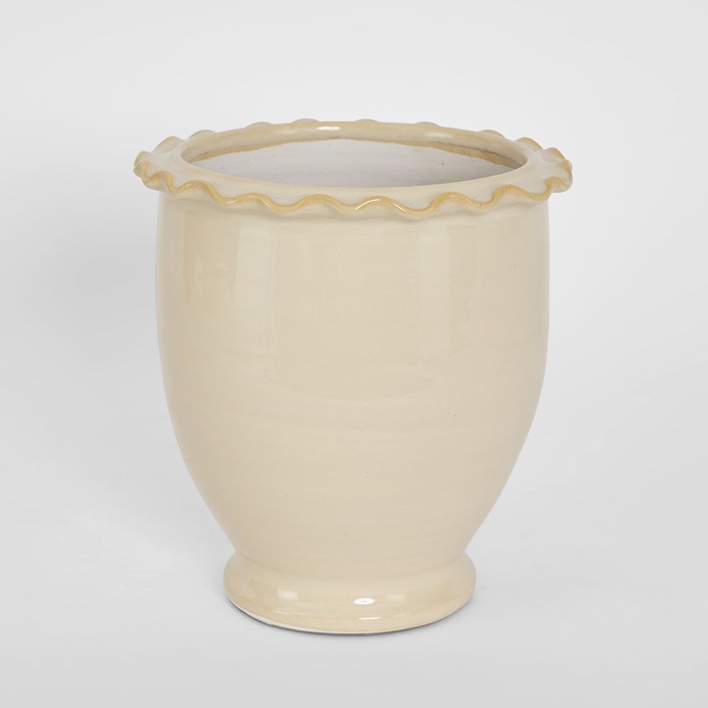 A simple, classic pot with a clean silhouette and timeless design, perfect for showcasing plants or adding understated elegance to any space. Available in 2 sizes and White Glaze and Mustard Glaze. Water-resistant, however, due to the handmade nature and characteristics of the materials, complete waterproofing cannot be guaranteed. Watertight: N Drain hole or Plug: N Top opening diameter: 11cm
