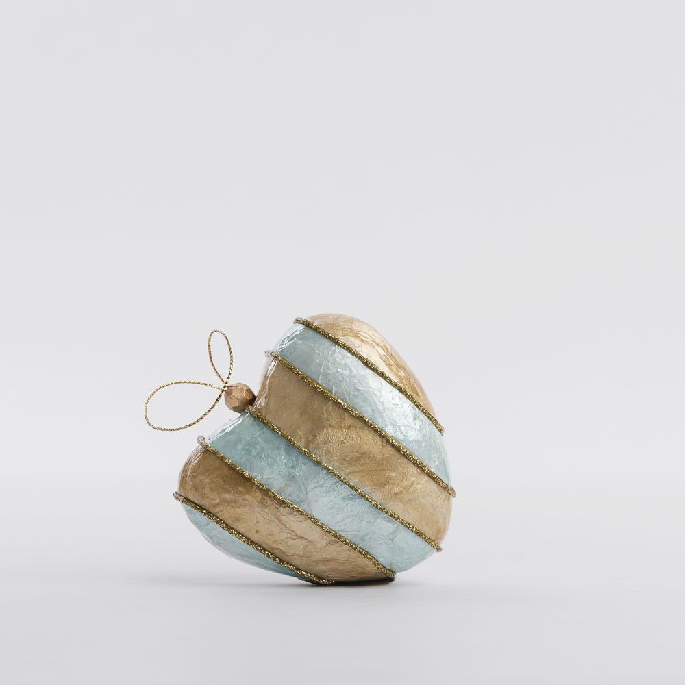 Stripe Capiz Heart Decoration Gold & Blue Sml