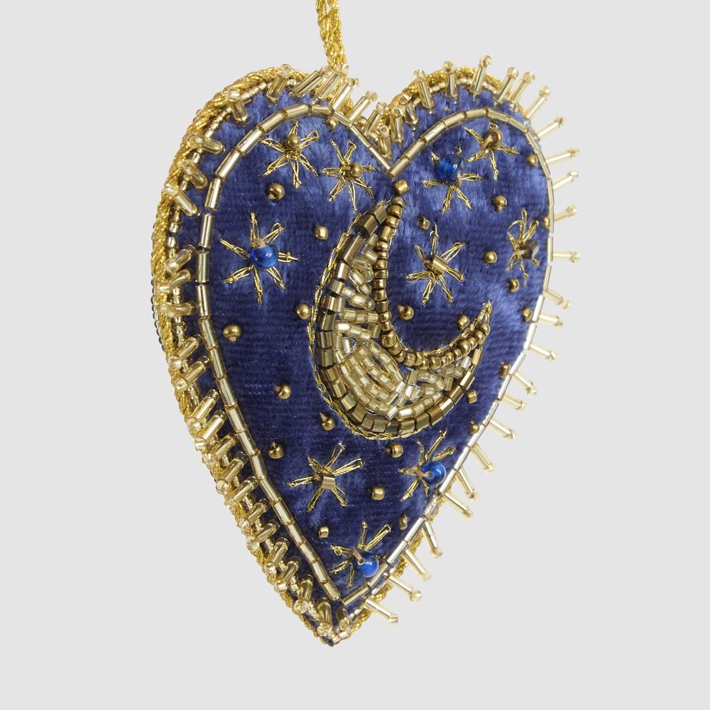 Celestial Moon Velvet Heart Decoration