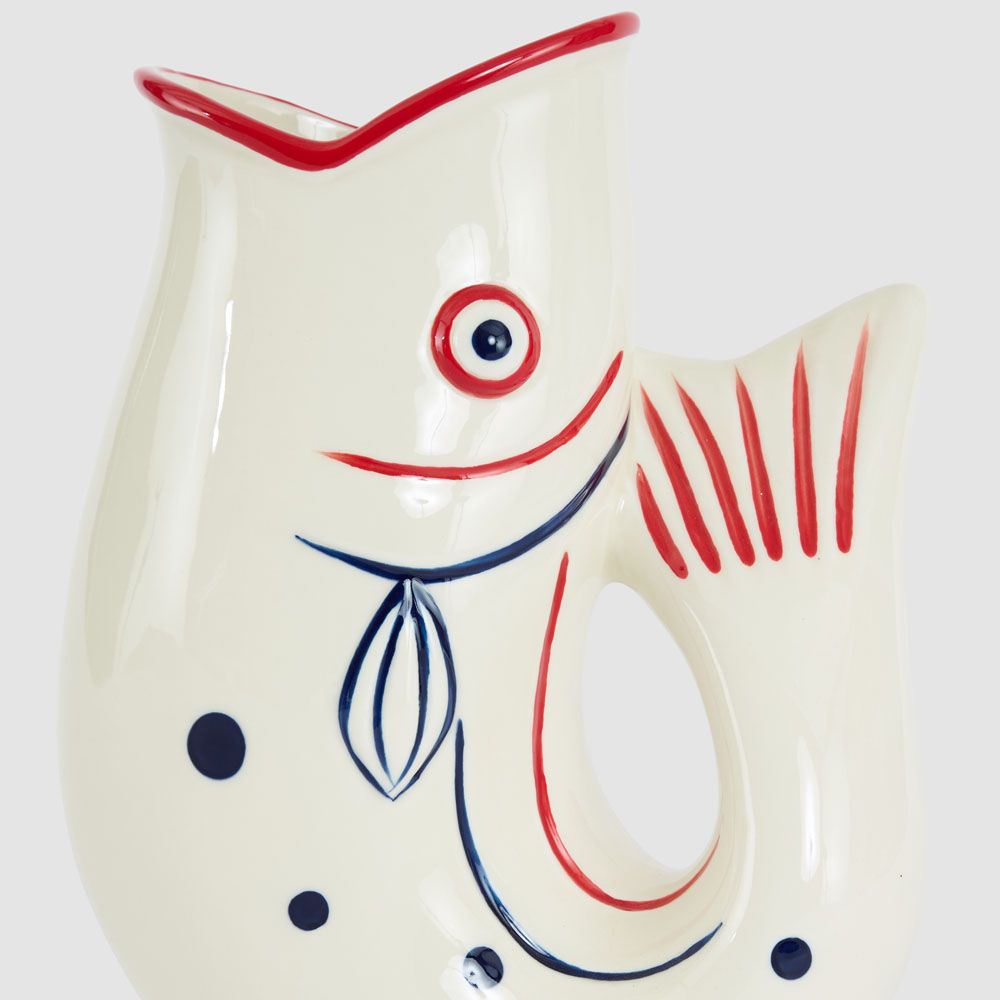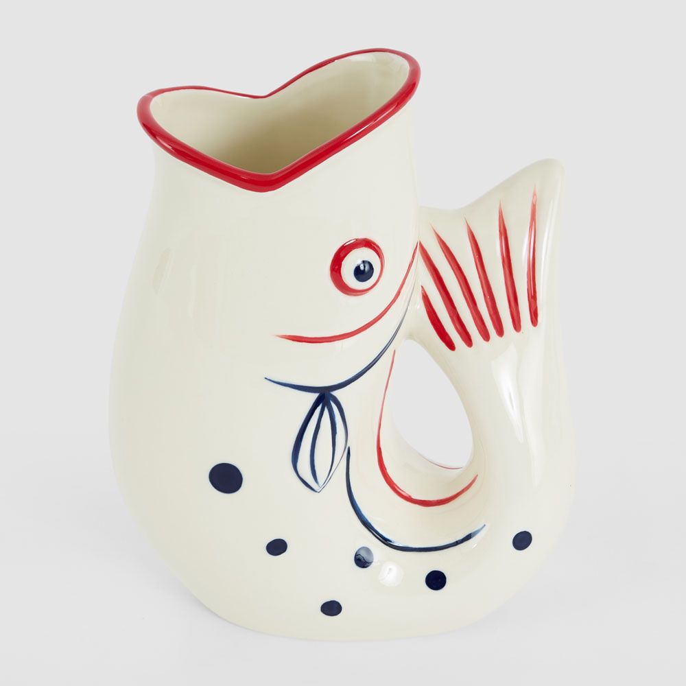Nautical Ceramic Fish Vase Red Lips