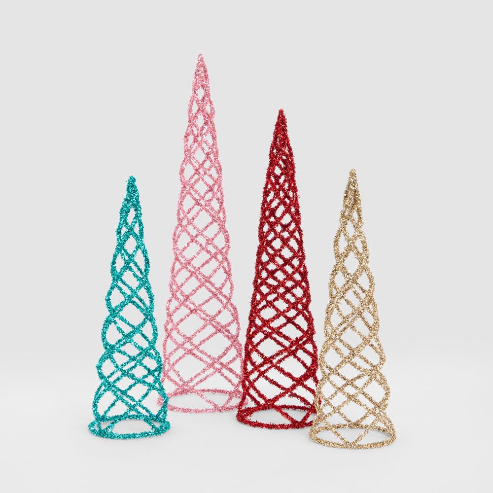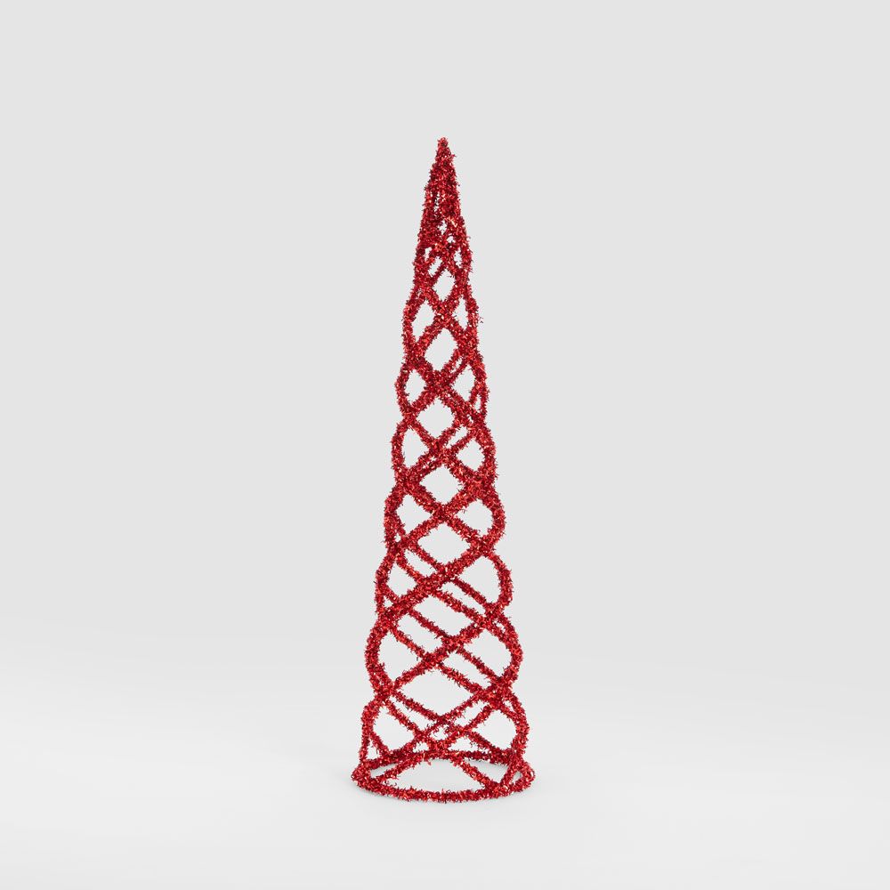 Swirling Tinsel Cone Tree Red