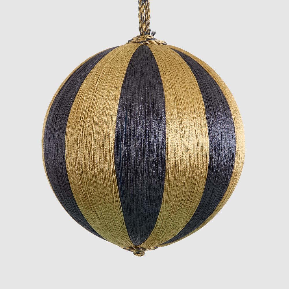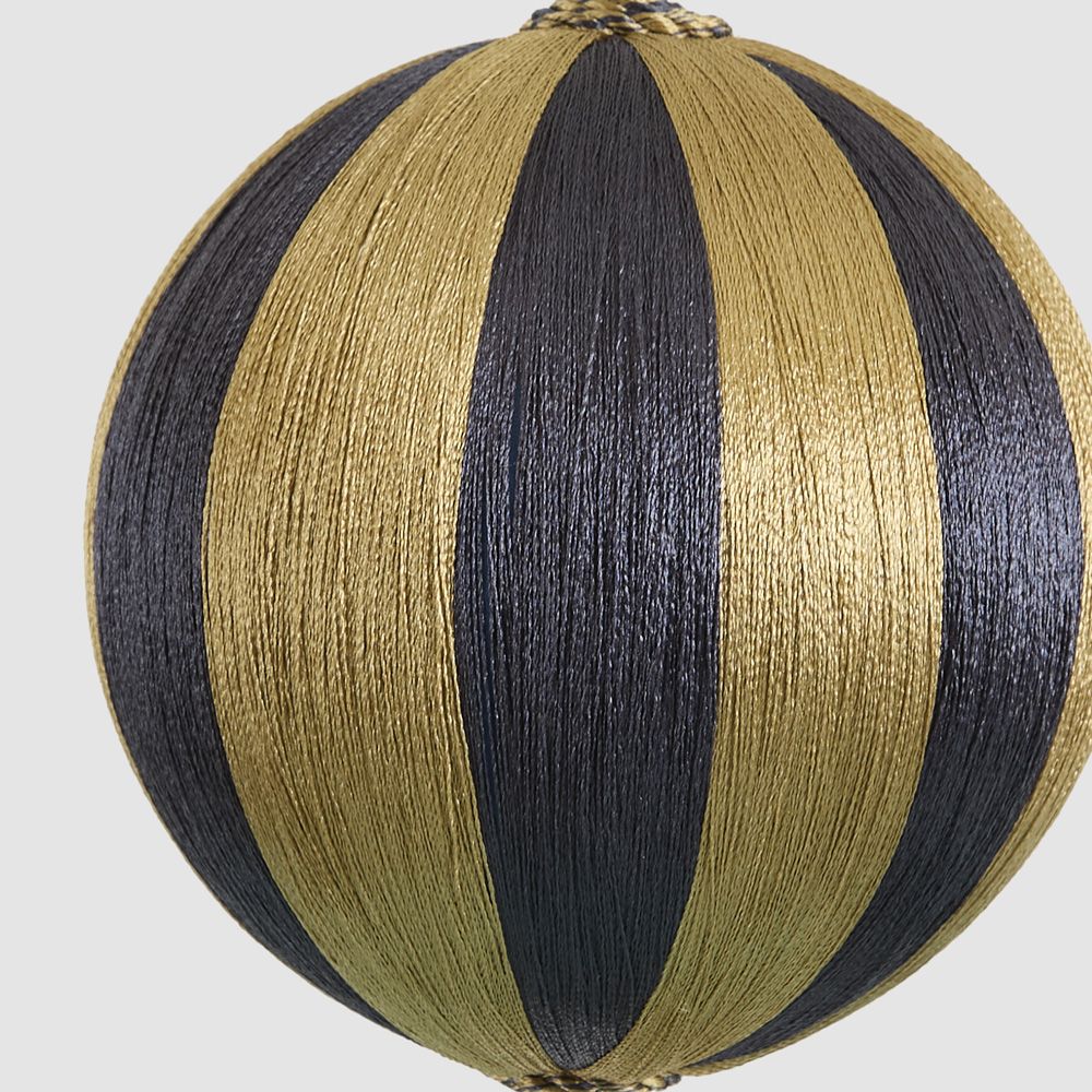 Silk Stripe Bauble Medium Navy Blue & Champagne