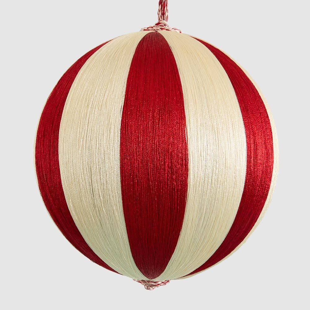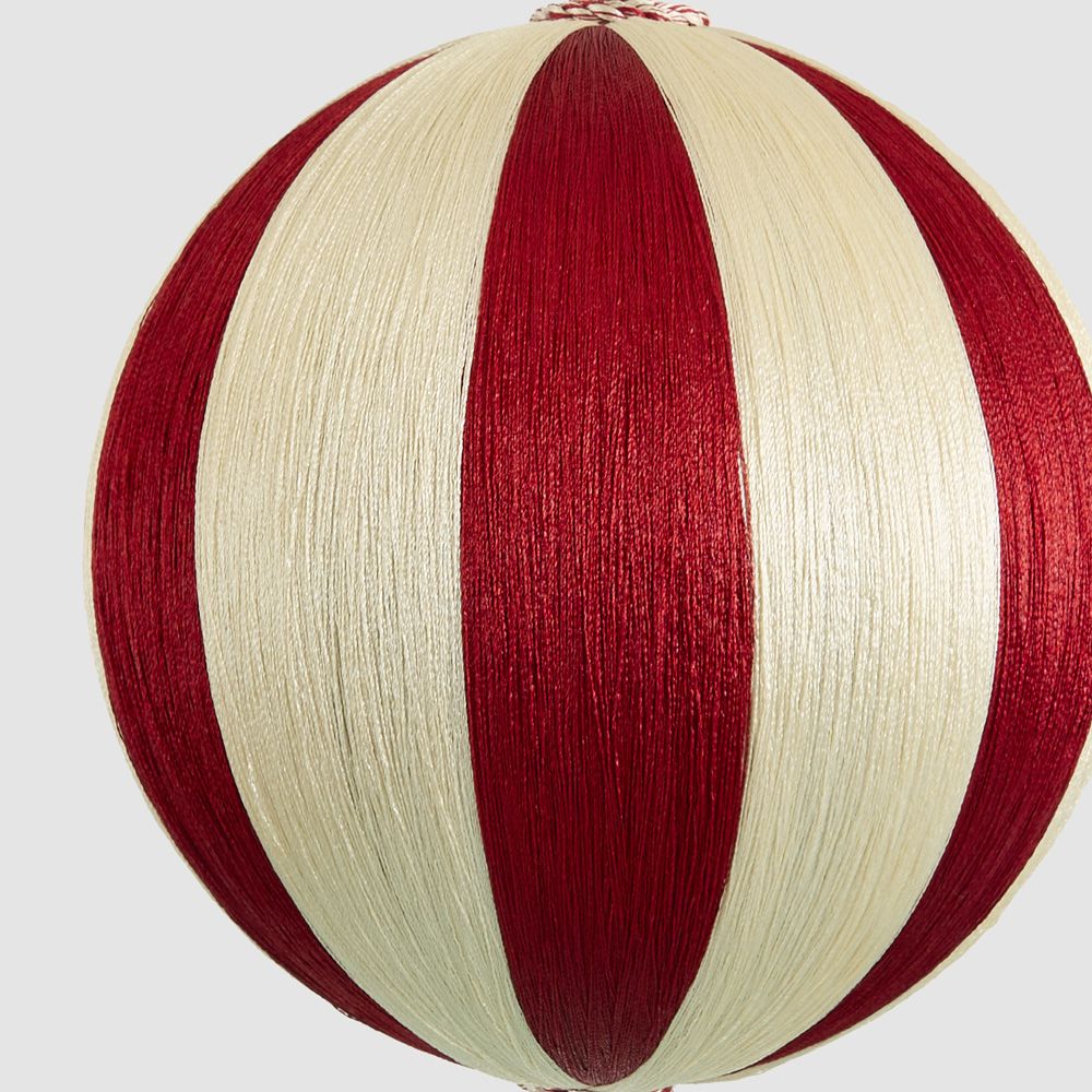 Silk Stripe Bauble Large Red & Ivory