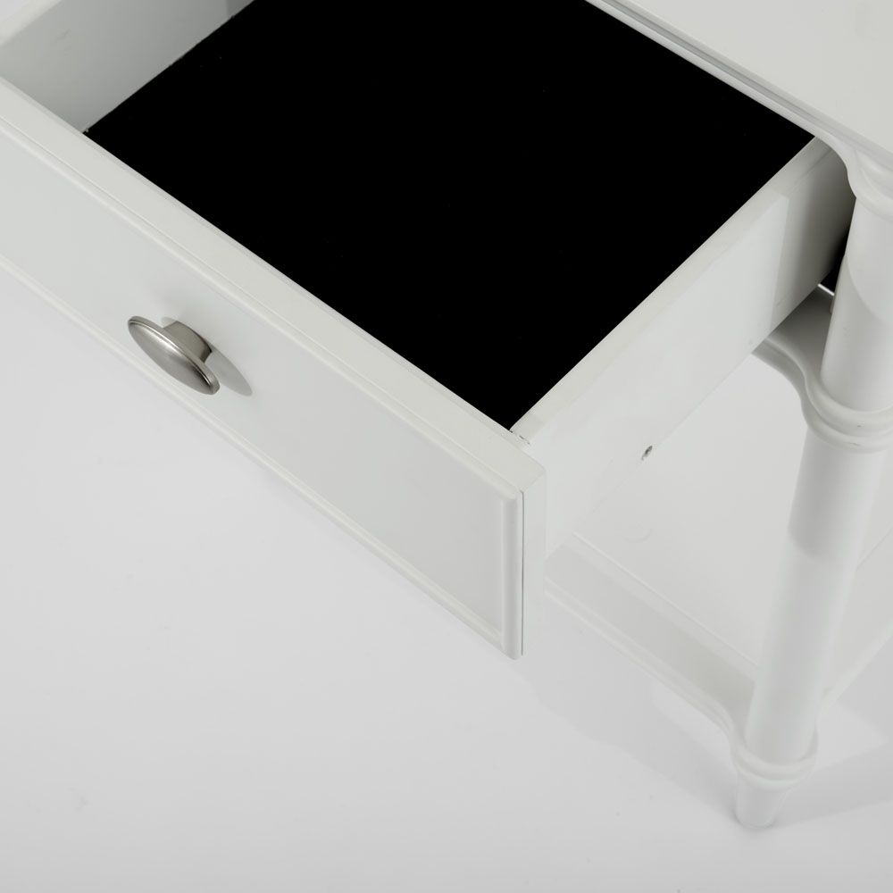 Brighten up your bedroom with the elegant simplicity of the Dakota 1-Drawer Bedside in White. Designed with smooth edges and a clean, modern silhouette, it brings a fresh sense of calm to any space. The generous single drawer offers convenient storage for your nighttime essentials, keeping everything neatly tucked away while maintaining an uncluttered look. Its streamlined form makes it an easy addition to both classic and contemporary interiors, offering everyday function with understated style. Wipe clean with soft cloth. If liquid spills occur, prompt cleaning is advised. Do not use harsh chemicals or furniture polish. Floor Clearance: 8cm