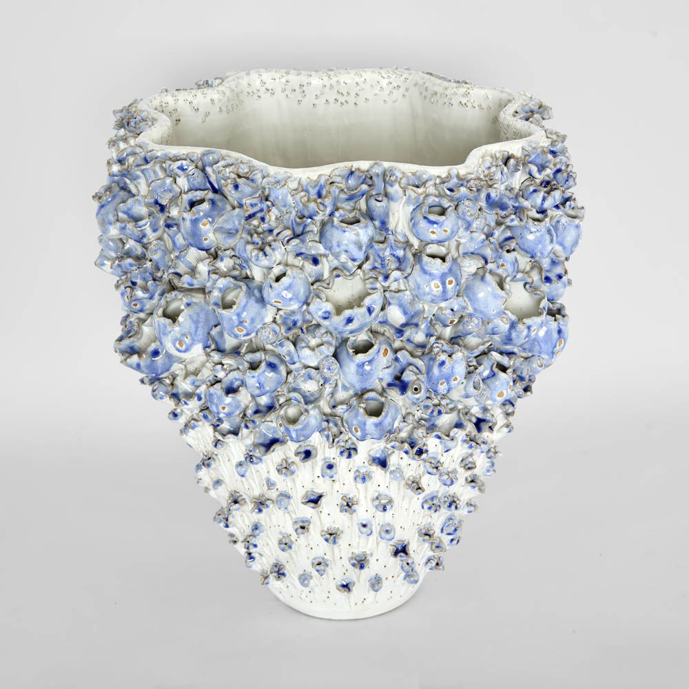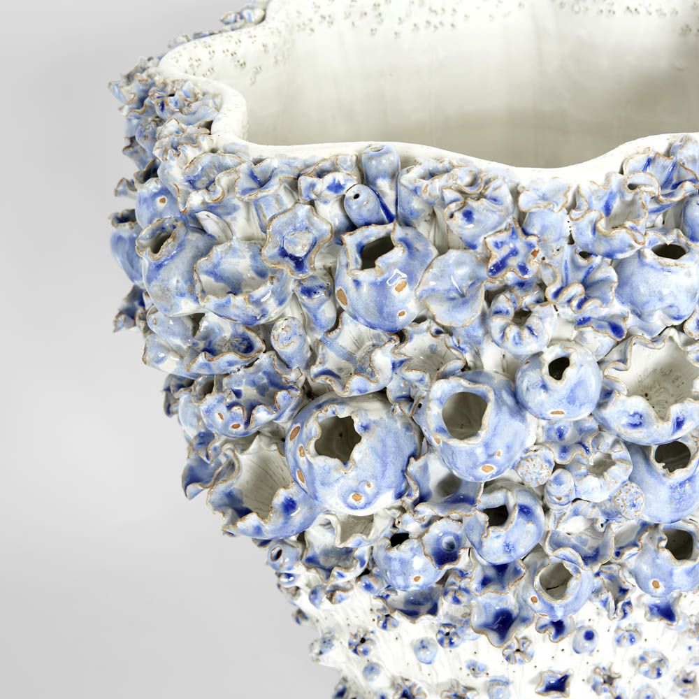 Handcrafted in Thailand and covered in barnacle textured details. Use as a showstopping centre piece or fill with trailing greenery and floral to make a dramatic arrangement. Finished in a modern blue to bring depth and texture. Wipe clean with a soft damp cloth. Indoor decorative use only. Not guaranteed 1% watertight. Due to the handmade nature of this design there may be slight imperfections or irregularities and each may differ from the photographed sample. watertight/waterproof