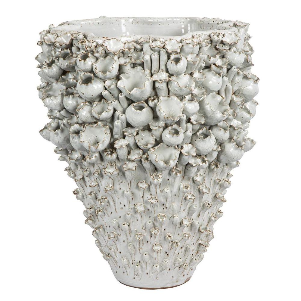 Handcrafted in Thailand and covered in barnacle textured details. Use as a showstopping centre piece or fill with trailing greenery and floral to make a dramatic arrangement. Finished in a modern blue to bring depth and texture. Wipe clean with a soft damp cloth. Indoor decorative use only. Not guaranteed 1% watertight. Due to the handmade nature of this design there may be slight imperfections or irregularities and each may differ from the photographed sample. watertight/waterproof