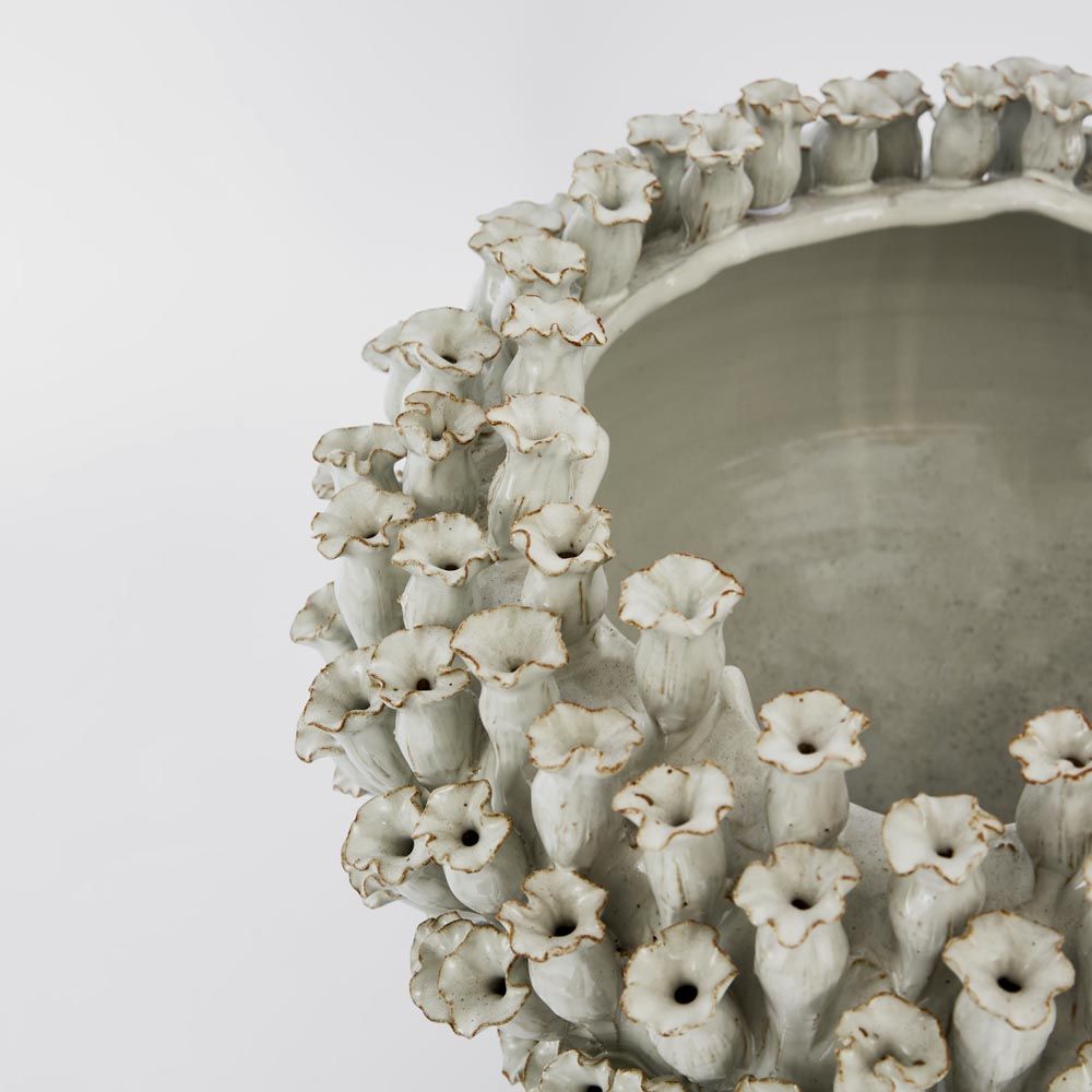 Inspired by the remarkable corals of the ocean this oversized vase is the perfect way to add interest and texture to your styling. Handcrafted in Thailand and finished with a rustic glossy white glaze to highlight the intricate detailing. Fill with your favourite florals or greenery to create a statement arrangement. Wipe clean with a soft damp cloth. Indoor decorative use only. Not guaranteed 1% watertight. Due to the handmade nature of this design there may be slight imperfections or irregularities and each may differ from the photographed sample. watertight/waterproof