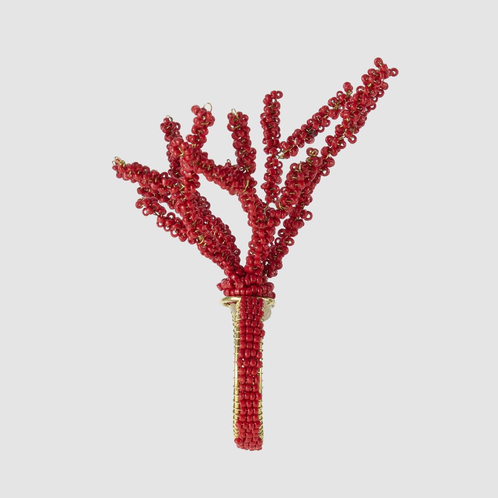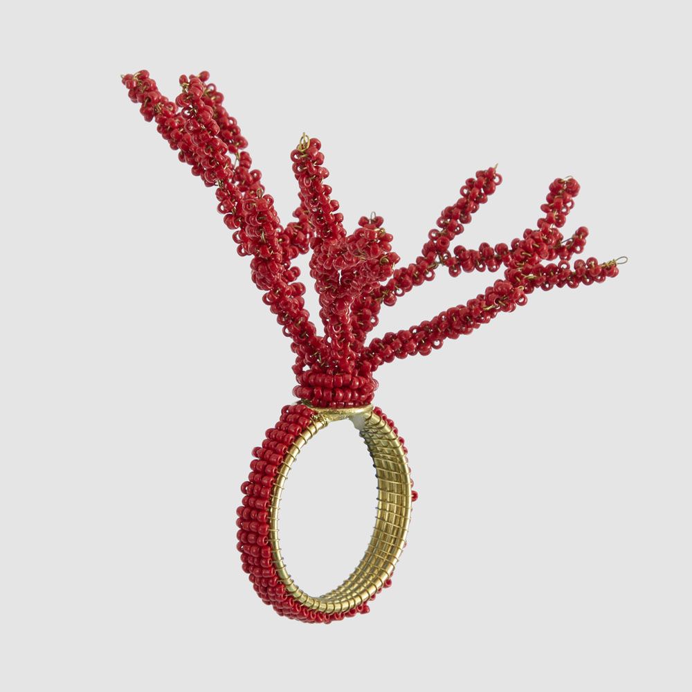 Beaded Coral Napkin Ring Red