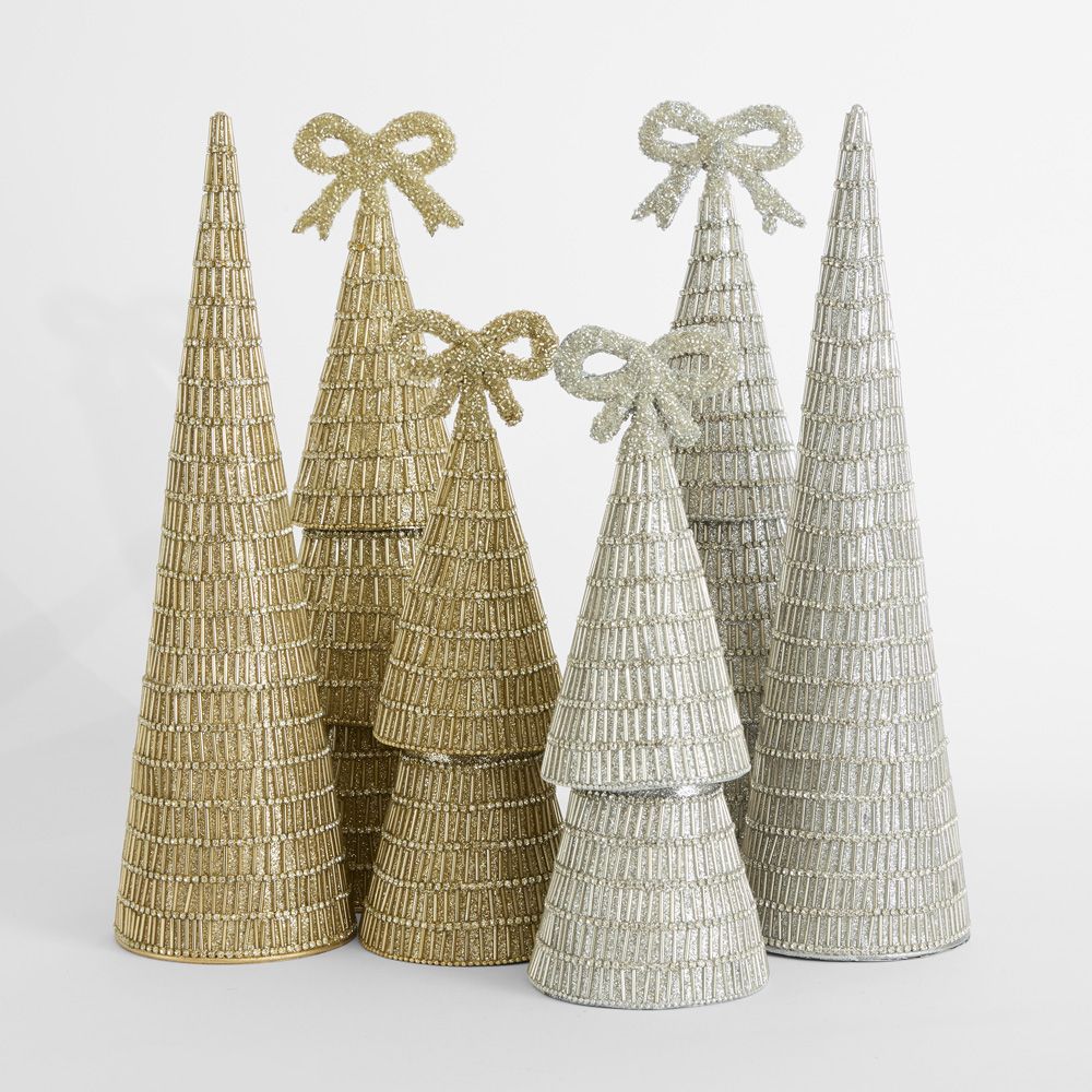 Tiffany Bugle Bead Tiered Cone Tree Large Silver