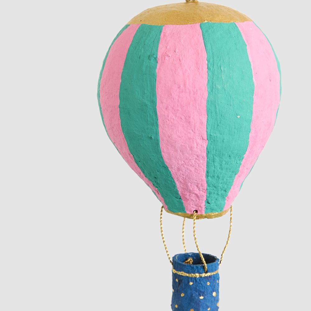 Mache Hot Air Balloon Teal Stripe Hanging Decoration