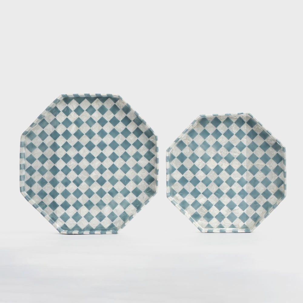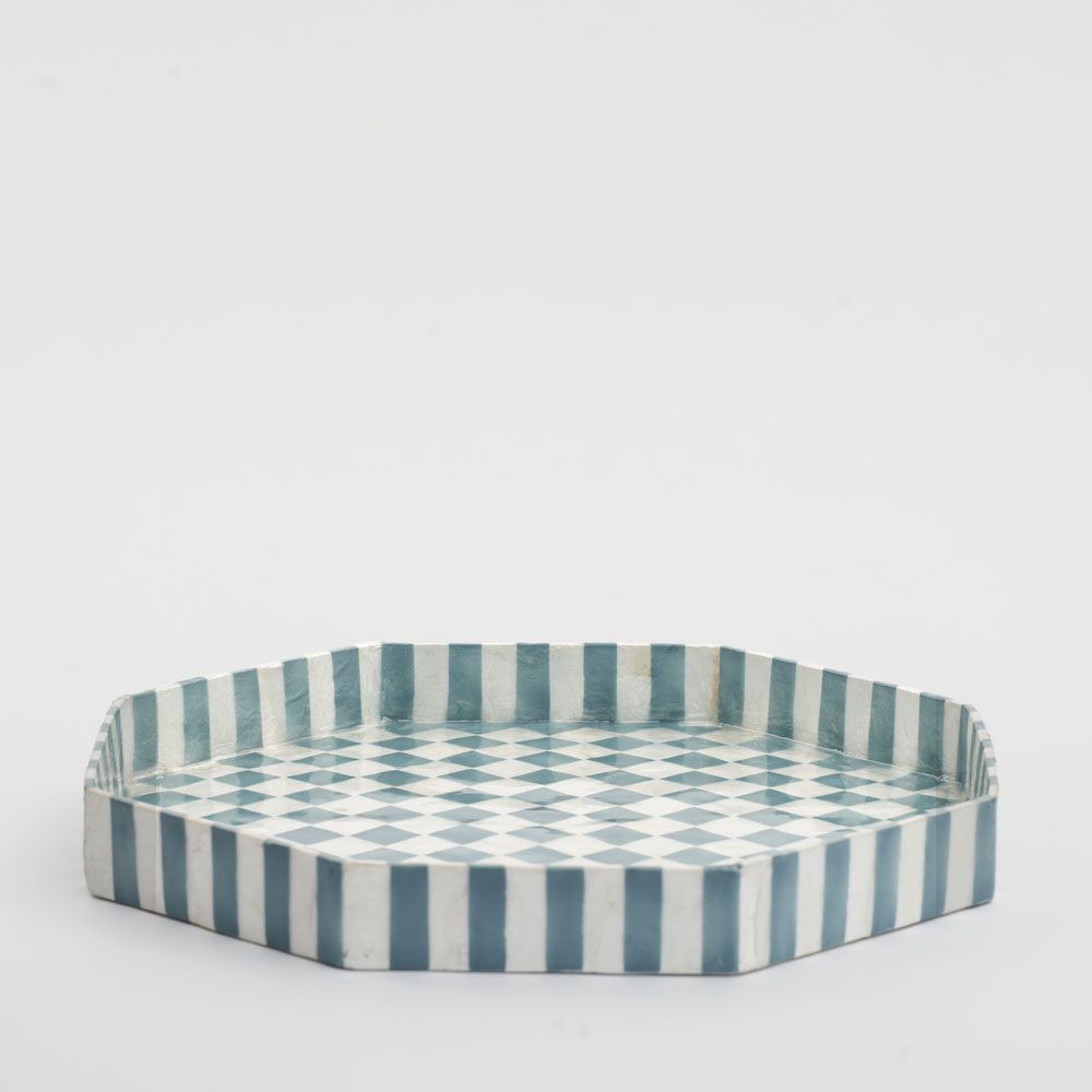 Blue Check Capiz Tray Lge