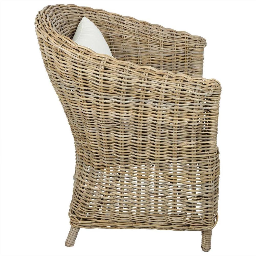 Drift away to coastal paradise with our Nova Rattan Chair. Crafted in natural rattan with intricate woven details, this rattan barrel chair exudes coastal charm with a touch of bohemian flair. Sink into relaxation with its ultra-soft and comfy removable cushions, making it ideal for lazy afternoons on your porch, patio, veranda, or garden. Perfect for those with a taste for beachy style or anyone looking to elevate their outdoor decor to new heights of comfort and chic sophistication. Suitable for use in sheltered outdoor space and not exposed to rain. Please note: Rattan is not designed for full outdoor use. If placed outdoors or even in covered outdoor areas, it may weather, fade, or change over time due to exposure to sunlight and moisture. We recommend indoor use or placing it in well-protected areas.