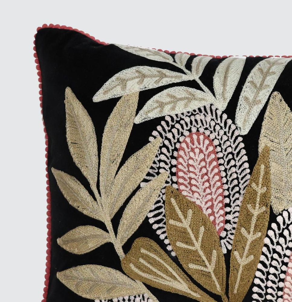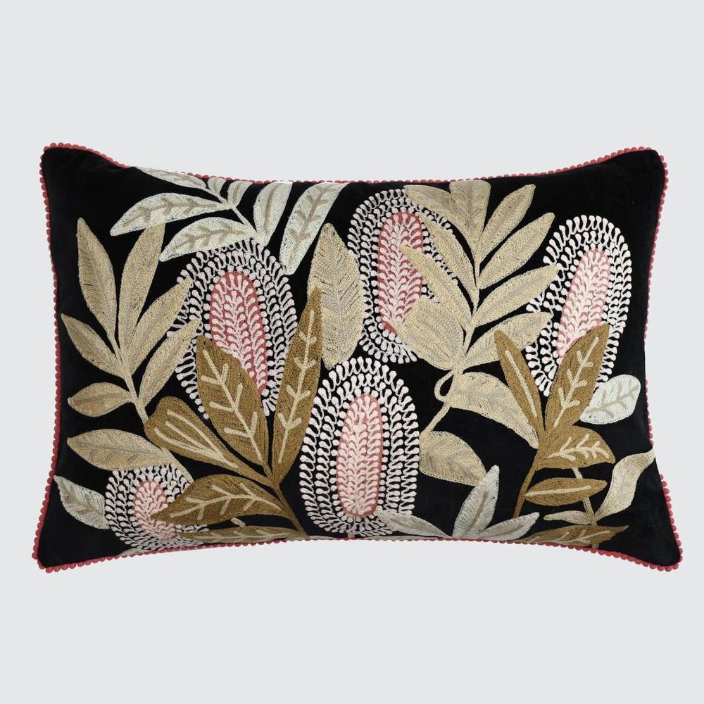 Banksia Embroidered 40 x 60 Cushion Ivory & Turquoise