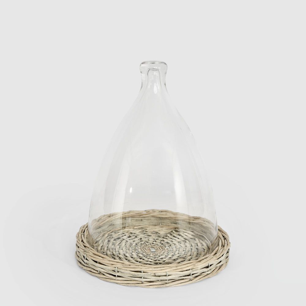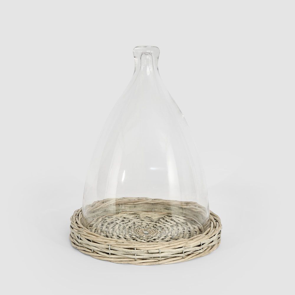 A classic glass cloche paired with a woven willow base, ideal for showcasing decorative objects, botanicals, or candles. The natural willow adds warmth while the clear glass keeps the look light and refined.