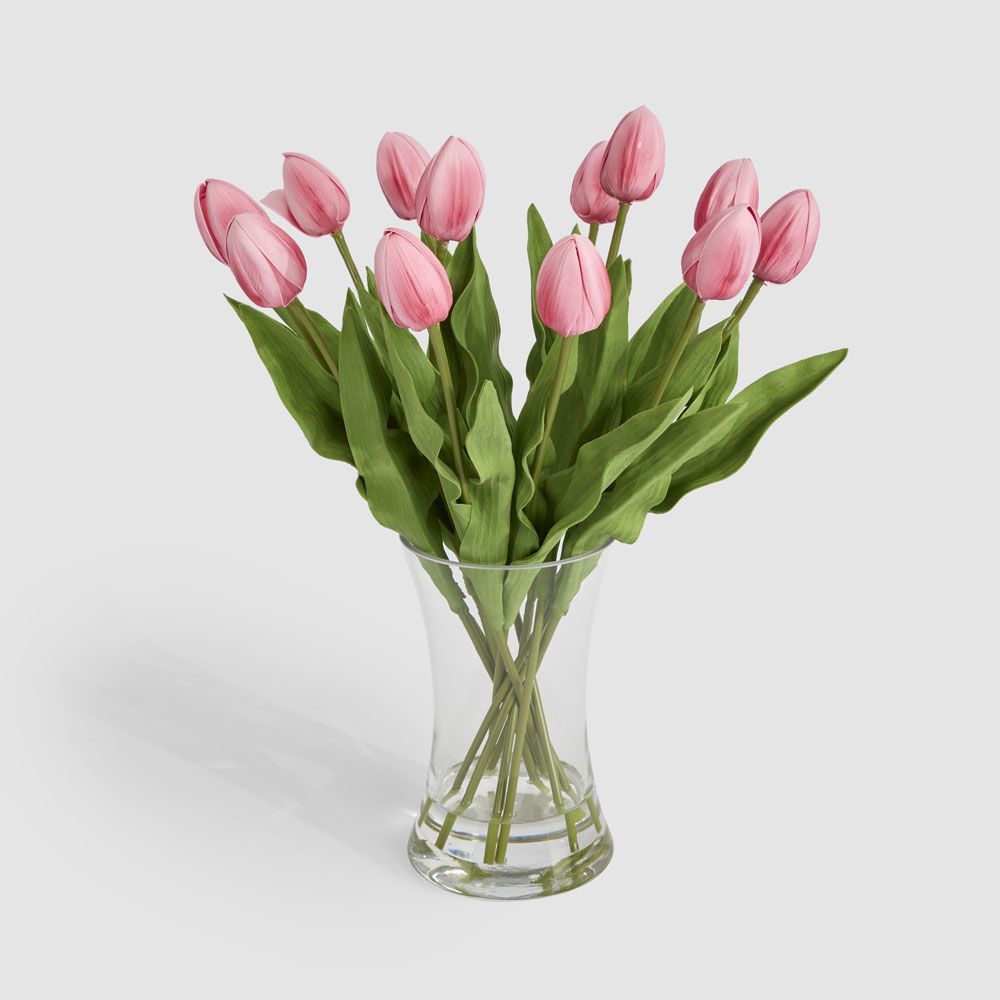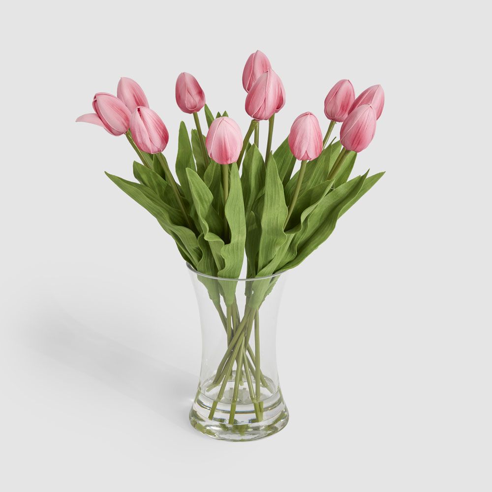 Real Touch Tulip Floral Arrangement in Water Vase Pink