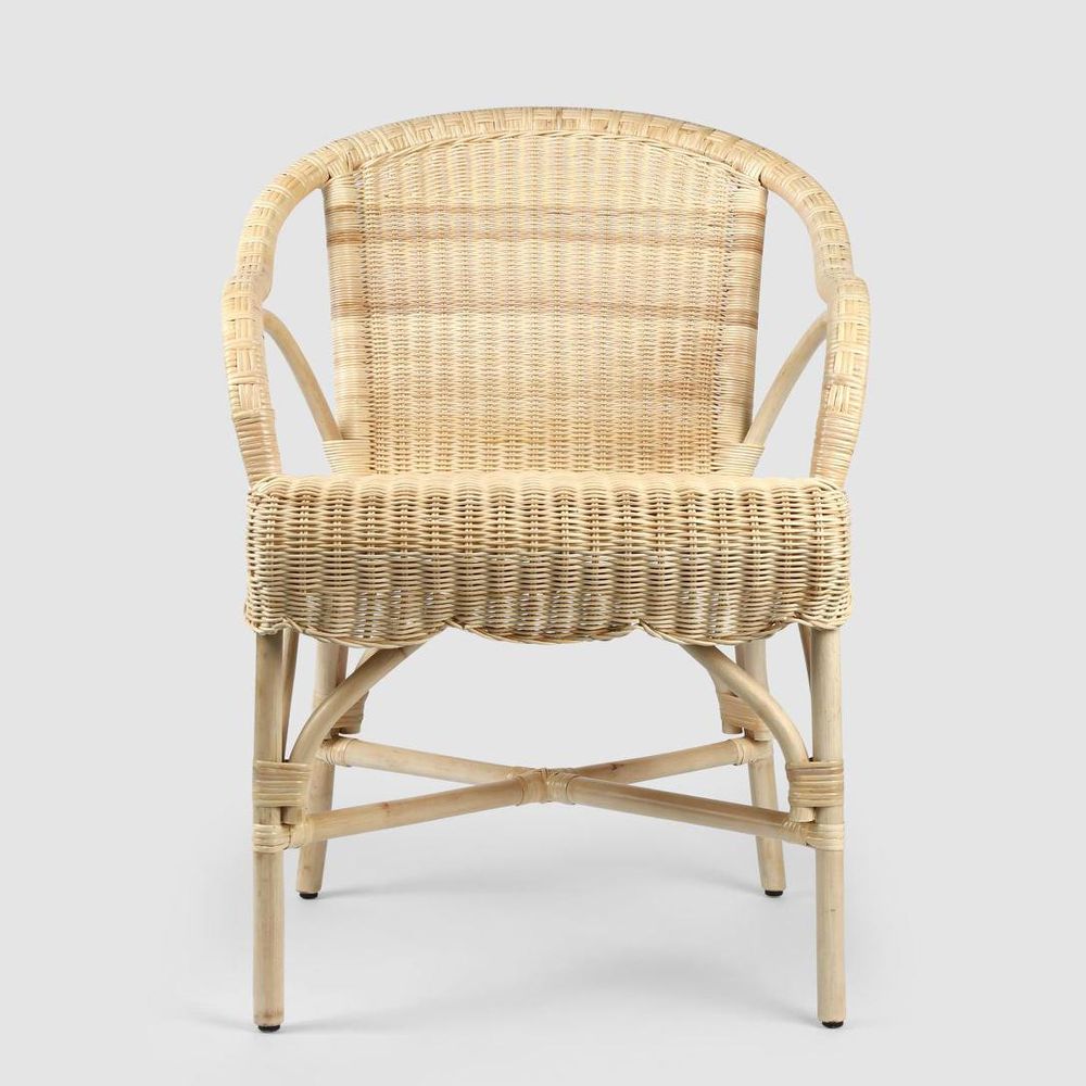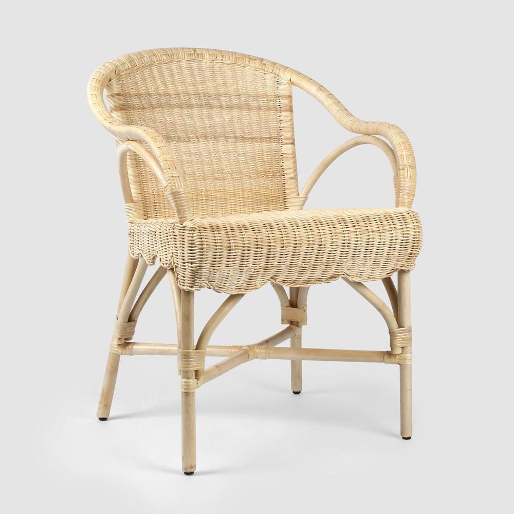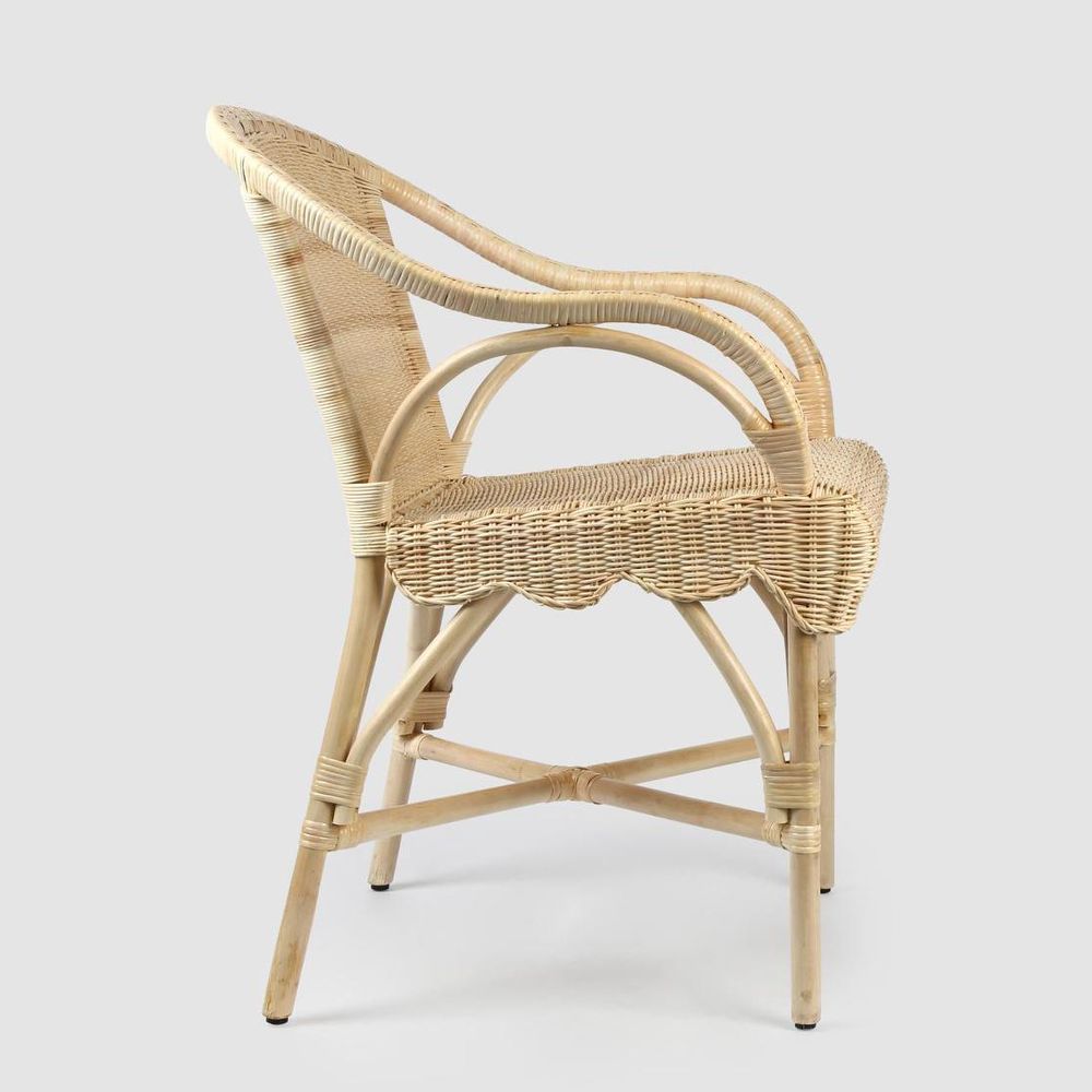 Inspired by 1920's French chairs, our Belle rattan armchair with scallop-edge detail is carefully woven by our skilled weavers in natural wicker. This classic armchair is to be used indoors only. Not suitable for Outdoor use. Please note: Rattan is not designed for full outdoor use. If placed outdoors or even in covered outdoor areas, it may weather, fade, or change over time due to exposure to sunlight and moisture. We recommend indoor use or placing it in well-protected areas.
