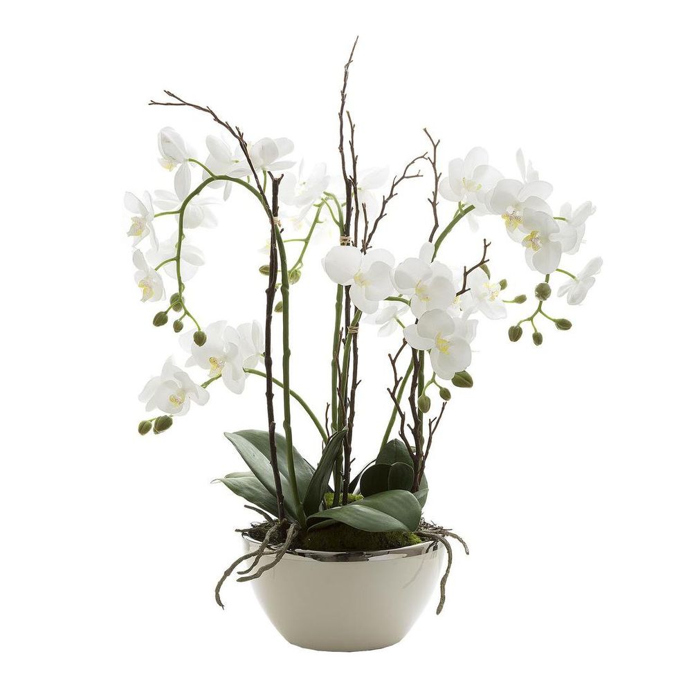 Orchid Real Touch 60cm in White Pot Silver Rim